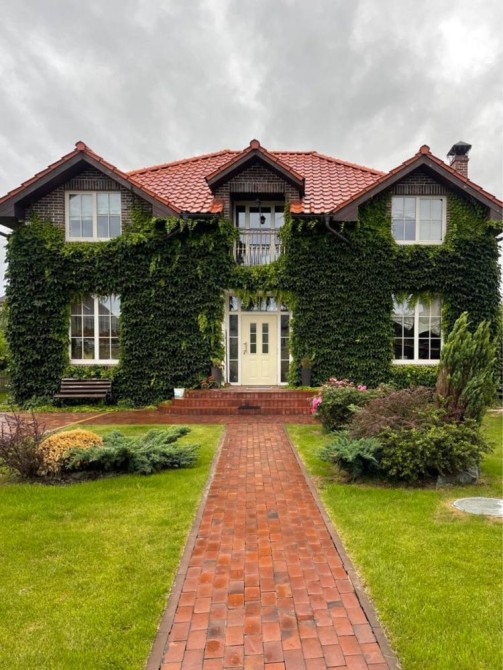 Озеленена територія, декоративна лоза окупує увесь будинок.