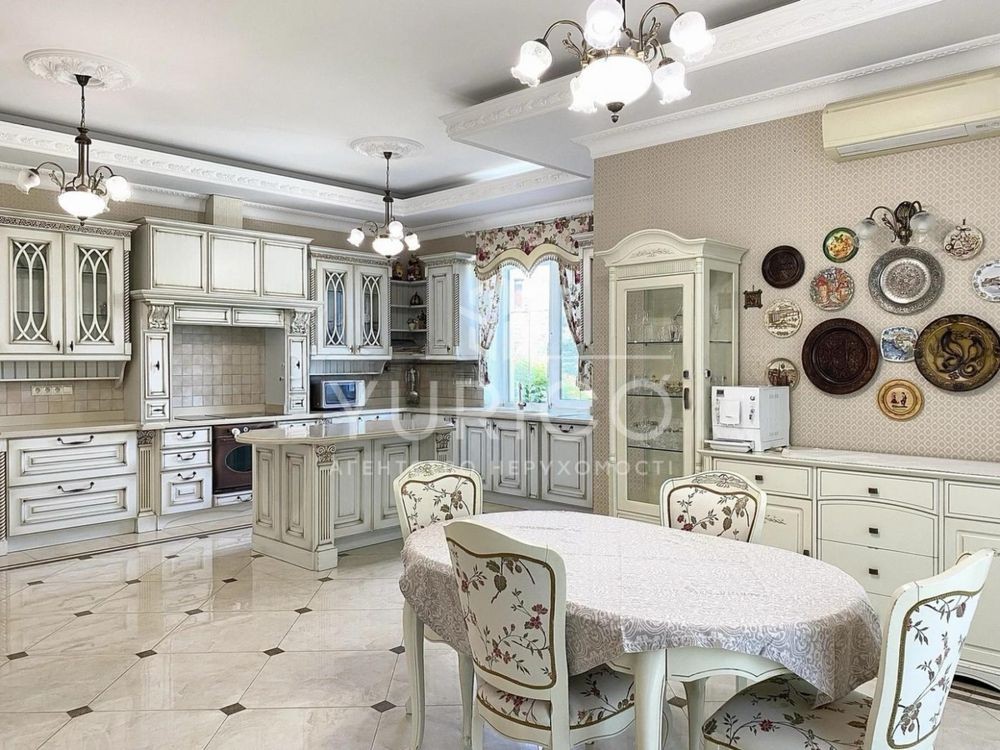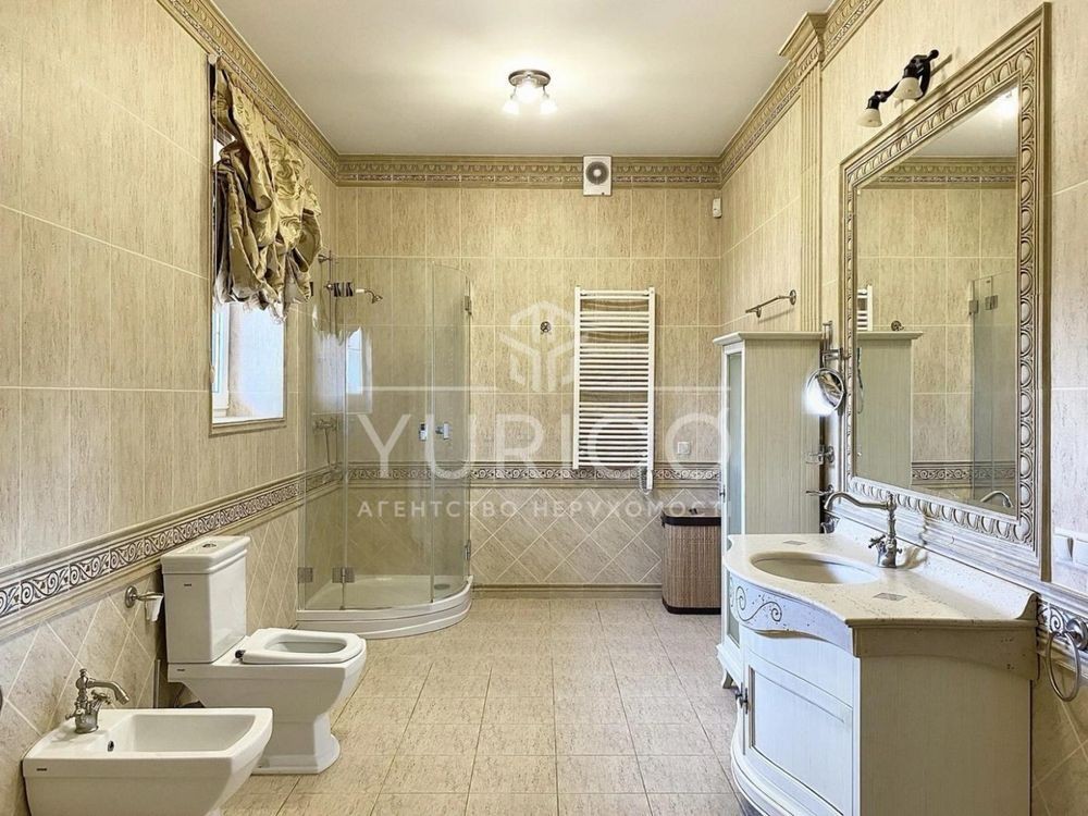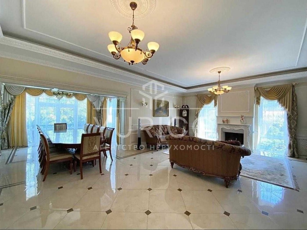 Будинок в стилі "ПРОВАНС", камінна зала, кухня студія, столова, 4 спальні кімнати, головна спальня з відкритою терасою, 4 сан.вузли, цокольний поверх, більярдна, сауна, тренажерна зала, винний льох, гардеробні, якісні матеріали, паркетна дошка, дерев'яні меблі, вся необхідна побутова техніка. Земельна ділянка 26 соток, газон, авто полив, дорослі дерева, відкритий басейн з роздвижним каркасом, гостьовий будинок (зруб), гараж на 2 авто, крита стоянка, альтанка з зоною гриль.