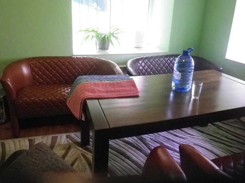 1-й этаж - просторная гостиная - 130 квадратных метров, камин, большой кожаный диван, стол на 10 персон. Теплый пол.