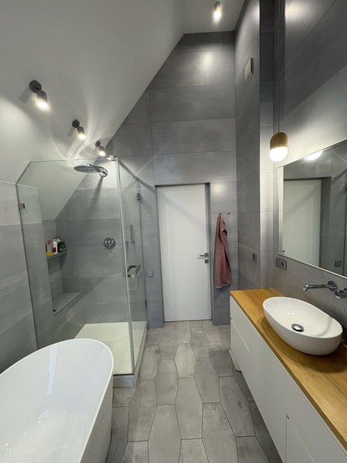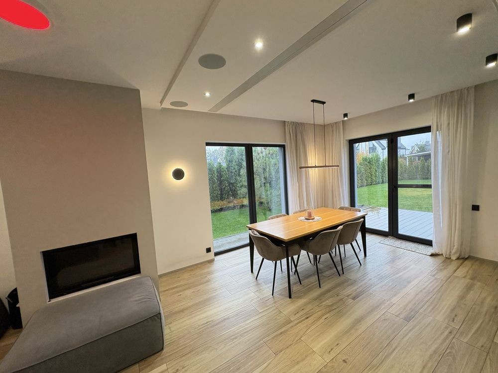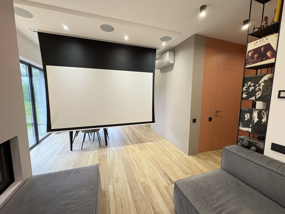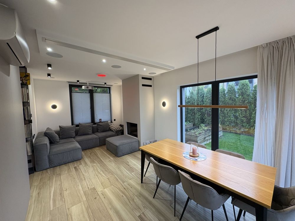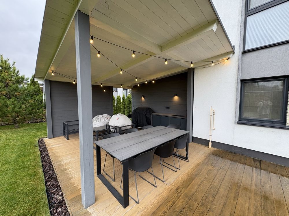 1 поверх: гардероб, туалет - пральна кімната, кухня - вітальня з каміном і домашнім кінотеатром. Велика тераса з газовим грилем, літньою кухнею, мʼякі меблі та великий стіл.
