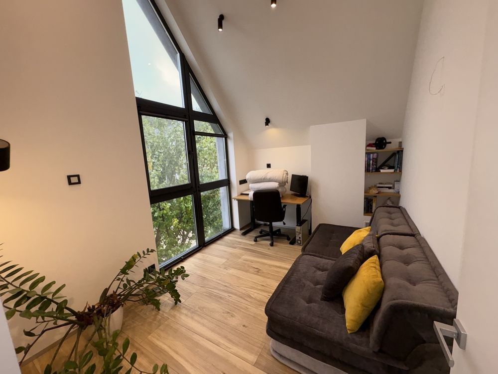 Площа 90 кв м, 2 поверхи, 6 соток власної території, своє парковочне місце під навісом + додаткове парковочне місце без навісу.