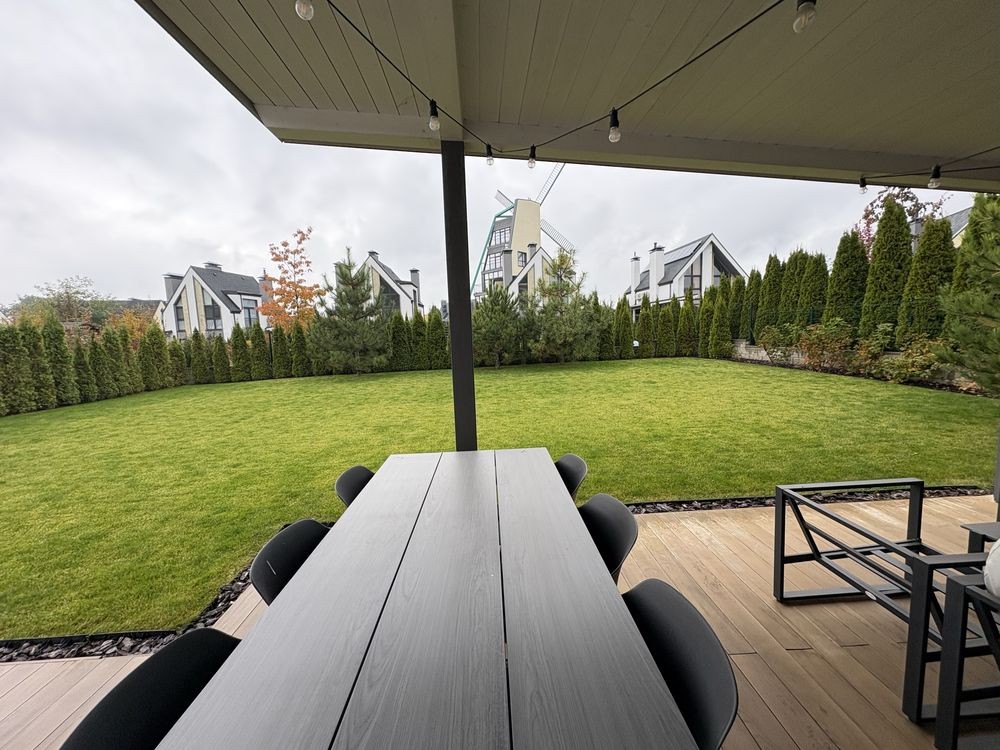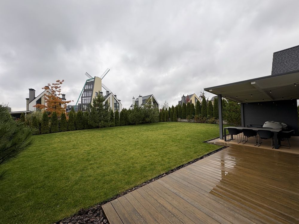 Газон з автополивом. Дуже охайна доглянута ділянка, де приємно зранку пити каву і насолоджуватись сонячними променями.