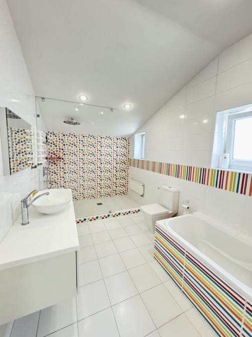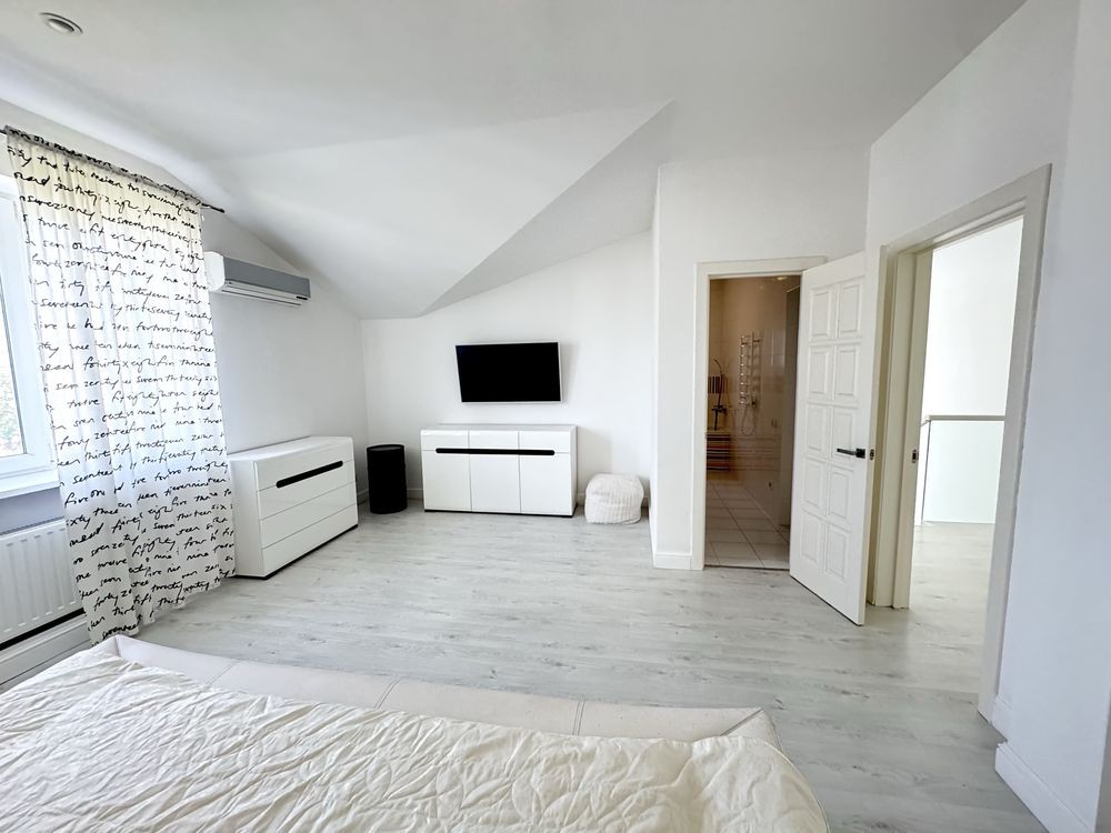 2-й поверх: 3 спальні (2 з двоспальним ліжком і дитяча кімната), санвузол з тропічним душем та ванною з туалетом, велика гардеробна кімната.