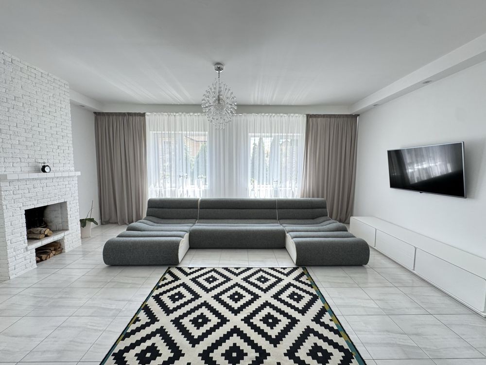 Площа будинку 210 м2 + відкрита тераса та зона барбекю на вулиці.