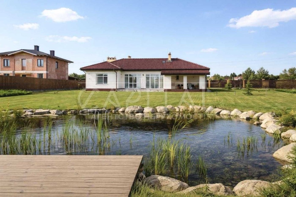Затишний, світлий будинок з панорамними вікнами та власним еко-озером, з плавальною зоною .