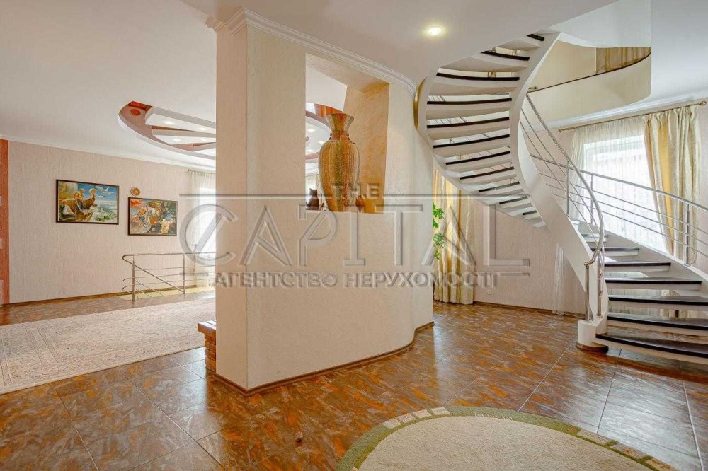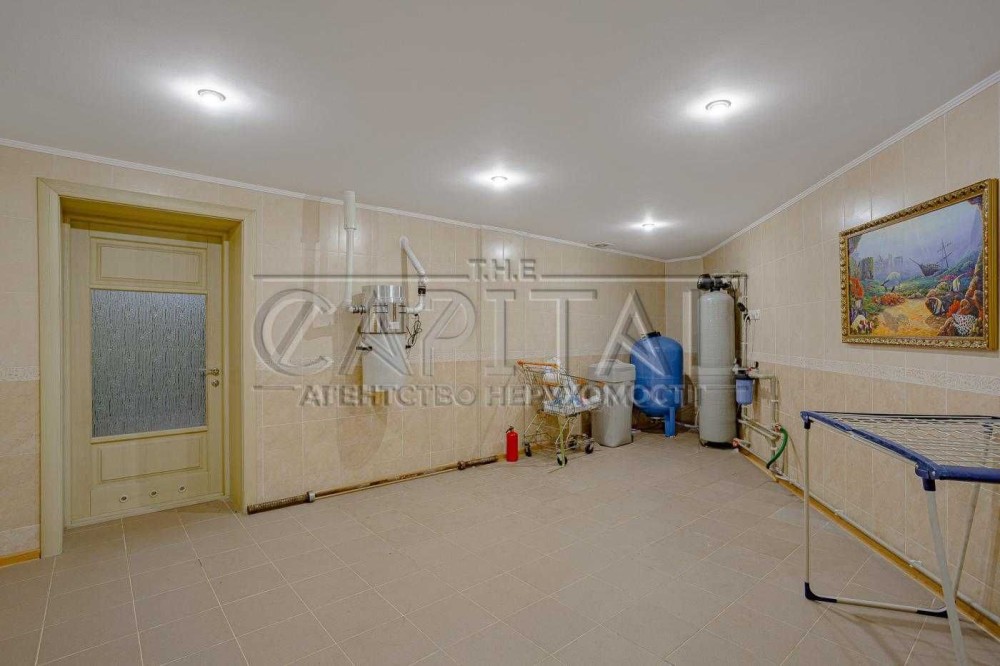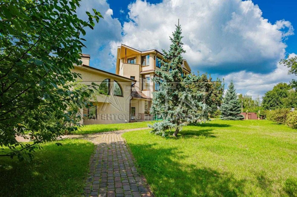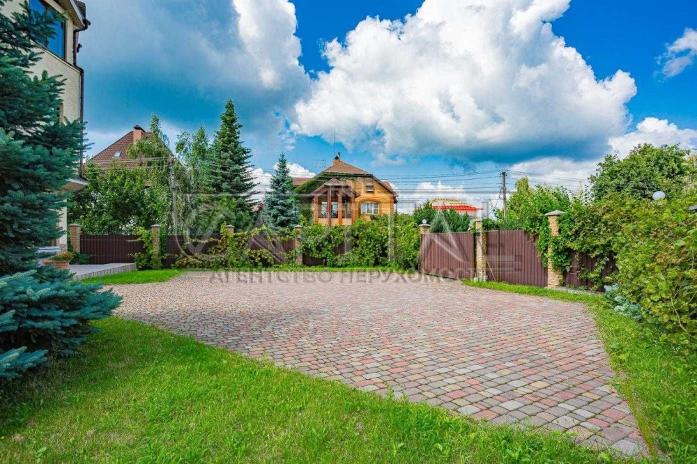 Ділянка 12 соток з ландшафтним дизайном на два рівні межує із зеленою водоохоронною зоною. Є прямий вихід до води, зона барбекю з альтанкою, окремий будинок сауни з басейном, власна свердловина, два окремі заїзди, гараж на 2 авто та простора гостьова парковка.