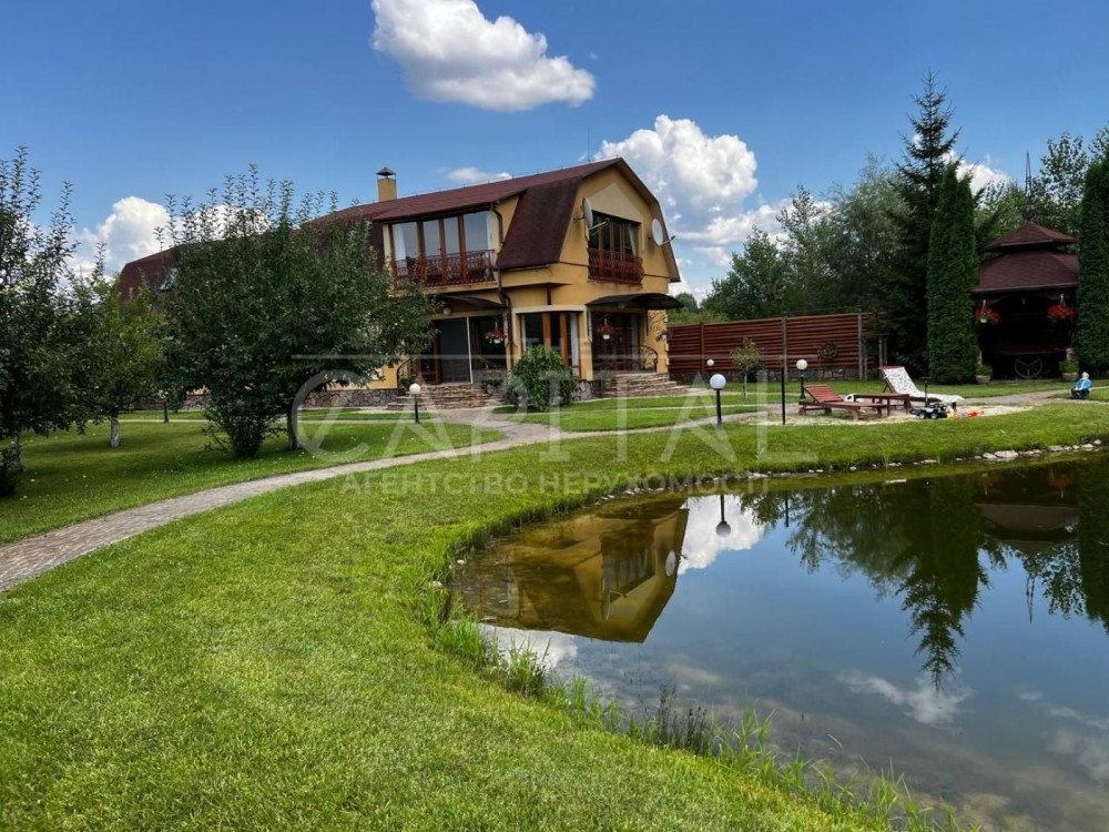 Локація та атмосфераЗатишний будинок у мальовничому селі Проців, лише 30 хвилин від Києва. Територія межує з лісом — ідеальне місце для спокійного відпочинку або заміського життя з комфортом міста.Комплекс з двох будинків:Господарський будинок (170 м²)2–3 спальні • 2 санвузли • кухня • кабінет • простора вітальня • тераса з мангальною зоною • мансардаГостьовий будинок (200 м²)Басейн • баня • більярдна з каміном • спортзал • кухня • гостьова спальняКомфорт та зручностіОпалення: газ / електрика / дроваІндукційно-газова плитаДизель-генератор на все подвір’я (повна автономність)Охоронець (оплачує власник)Критий басейн, баня, більярдна, спортзалБесідка, 3 мангали, яблуневий сад, парникГараж навіс на 2–3 автоОзероІдеально для родини, яка цінує комфорт, простір і природу.Будинок готовий до проживання — приїжджай і насолоджуйся заміським життям без турбот.Деталі та перегляд — за запитом.Будинок, який дарує спокій, затишок і справжній відпочинок від міської метушні.#A23214