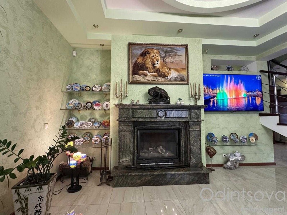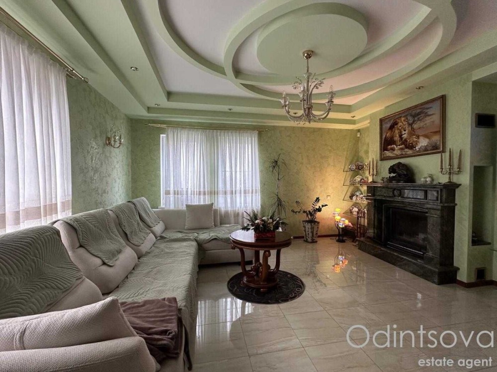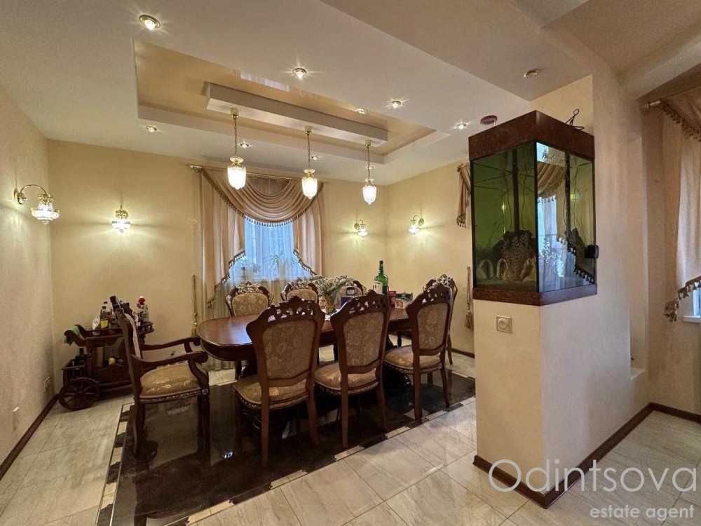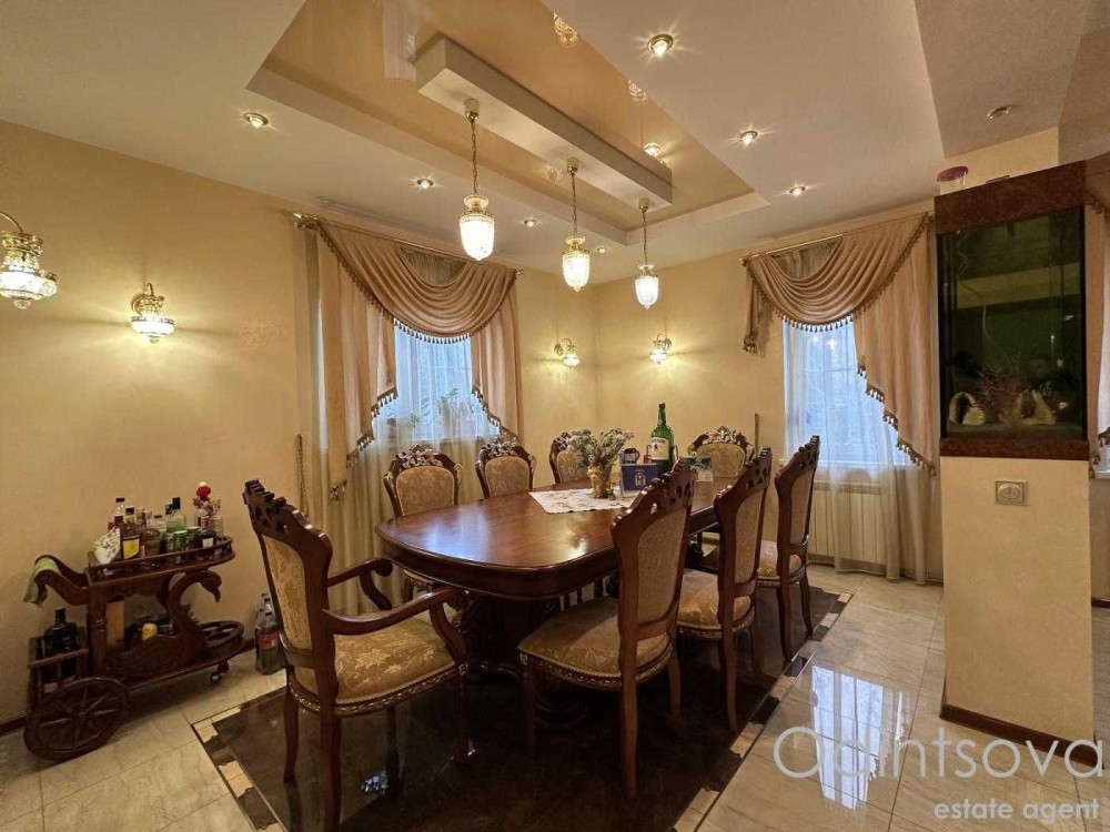 Ідеальний для родини. Загальна площа 250 м² з трьома спальнями, просторою вітальнею з каміном, елегантною їдальнею з великим дерев'яним столом, а також двома санвузлами. Інтер'єр виконаний у класичному стилі з елементами декору.