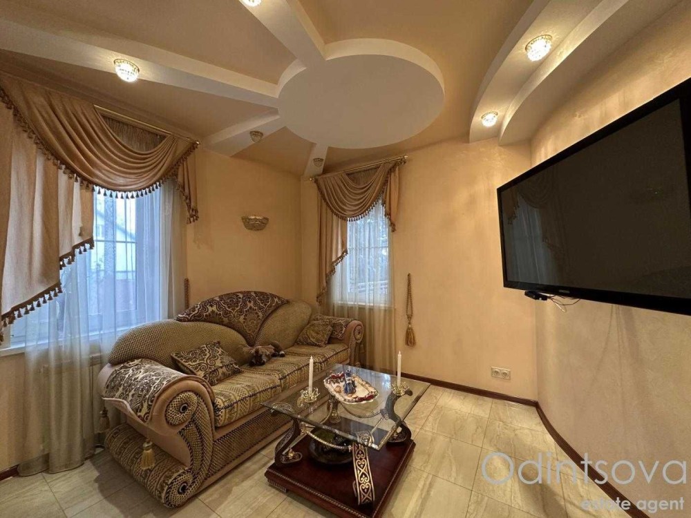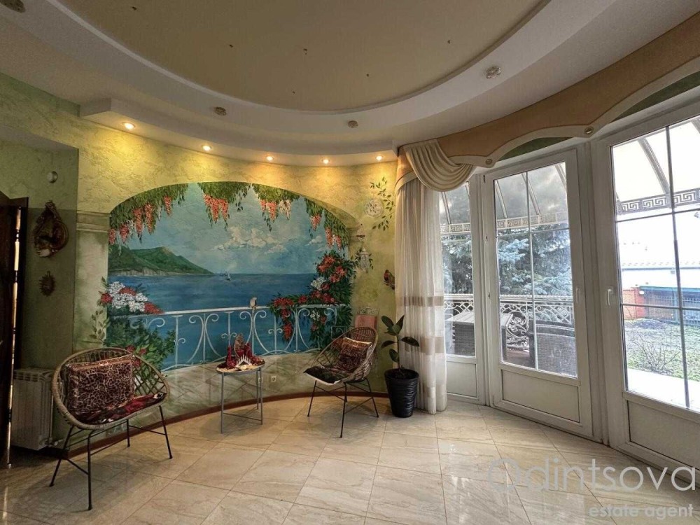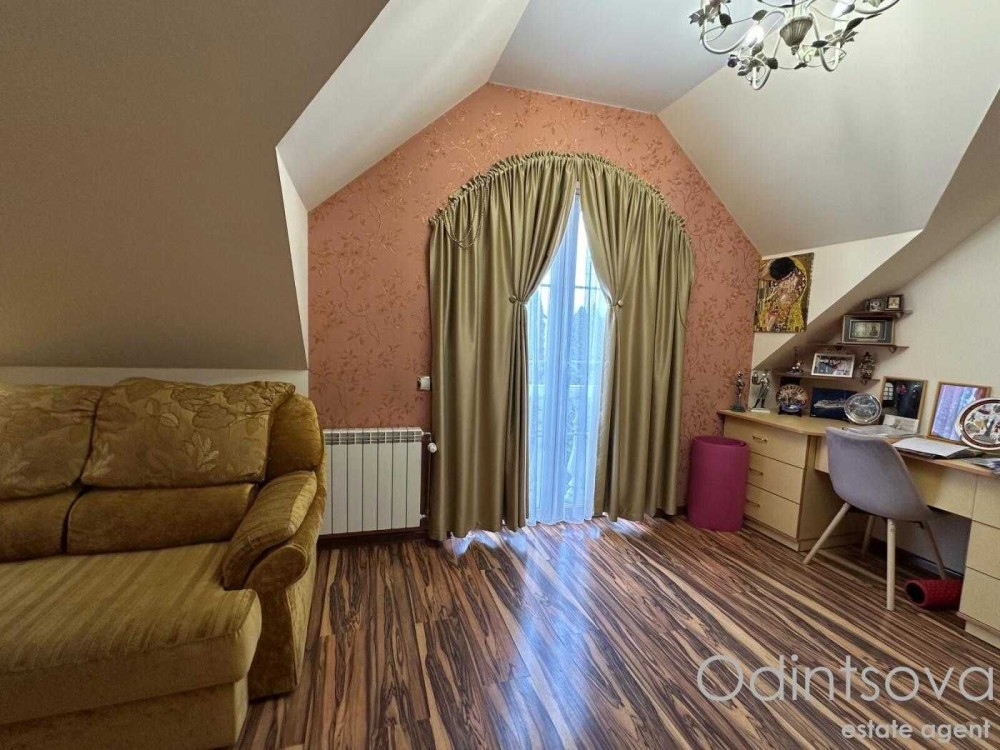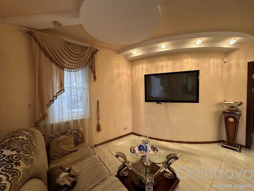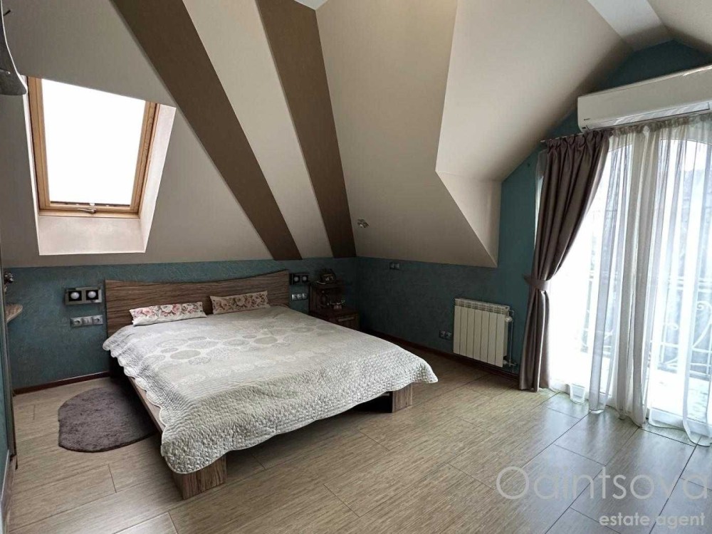 Ідеальний для родини. Загальна площа 250 м² з трьома спальнями, просторою вітальнею з каміном, елегантною їдальнею з великим дерев'яним столом, а також двома санвузлами. Інтер'єр виконаний у класичному стилі з елементами декору.