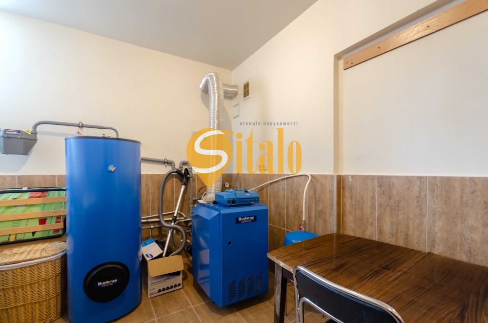 На 1-му поверсі простора вітальня та кухня, санвузол.