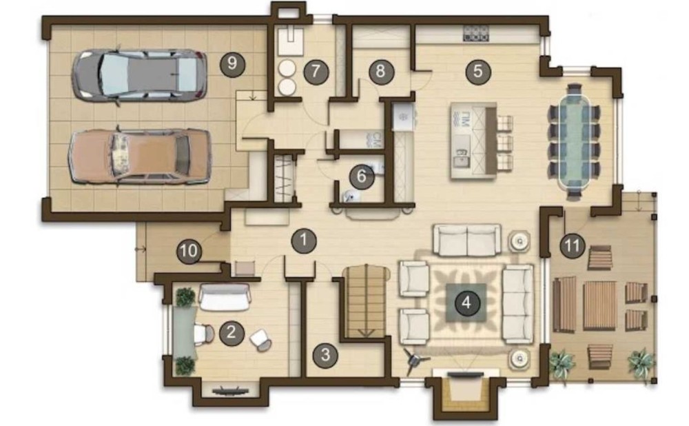 Загальна площа будинку — 313 м², гараж на 2 авто.