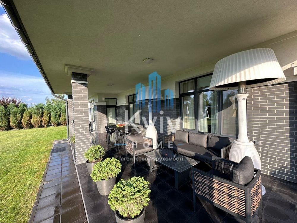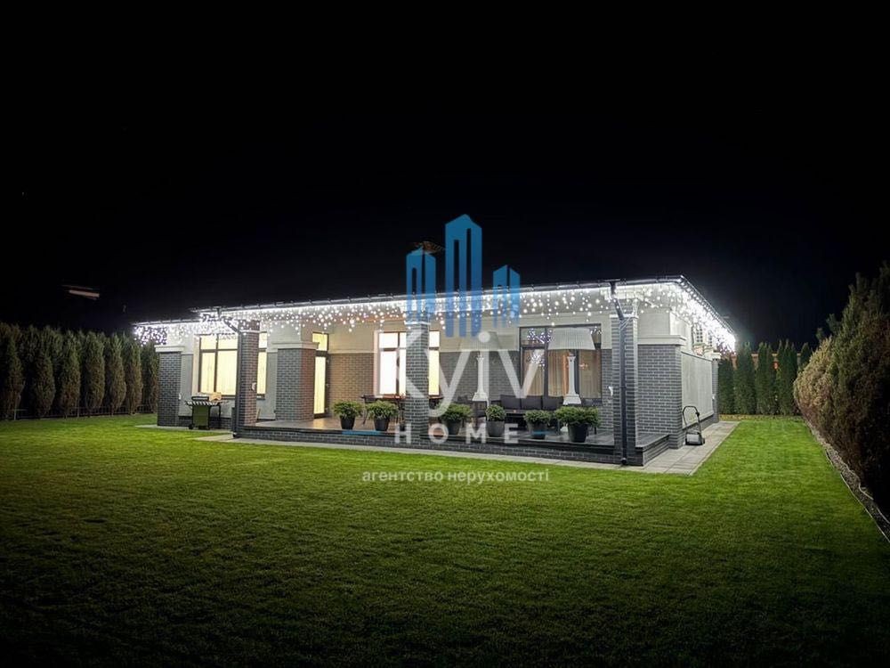 Здається в оренду стильний одноповерховий будинок площею 200 м на ділянці 12 соток у найпрестижнішій частині котеджного містечка «Золоче» — закритому комплексі “Rivera Zoloche”.