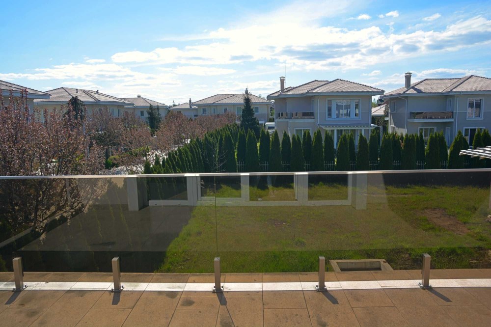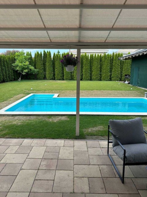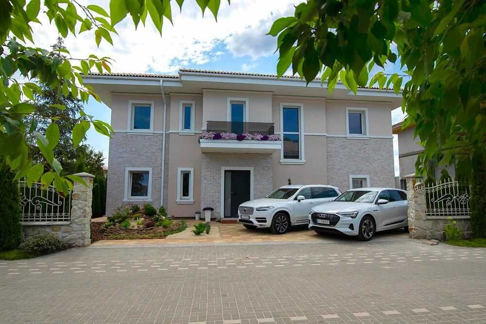 Будинок розташований на приватній ділянці площею 9 соток. Є басейн із підігрівом, газон. Будинок повністю готовий для проживання.