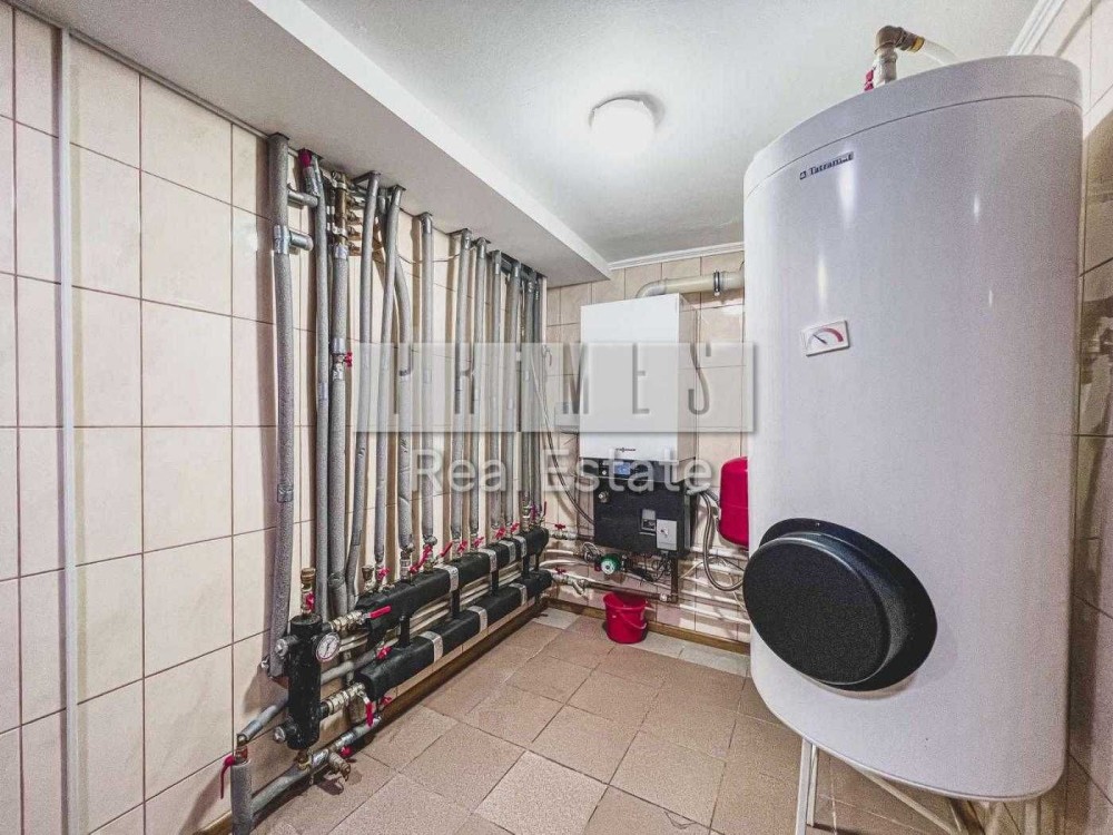 Опалення будинку газ, стоїть газовий котел та два бойлери на 350 л. Трифазне світло, стоять на кожну фазу стабілізатори, щоб не було перепадів. Сім камер відеоспостереження. Двоє воріт електричних. Хвіртка на електро замку. Та з коридору вихо у внутрішній дворик.