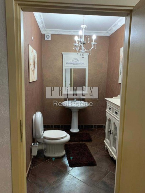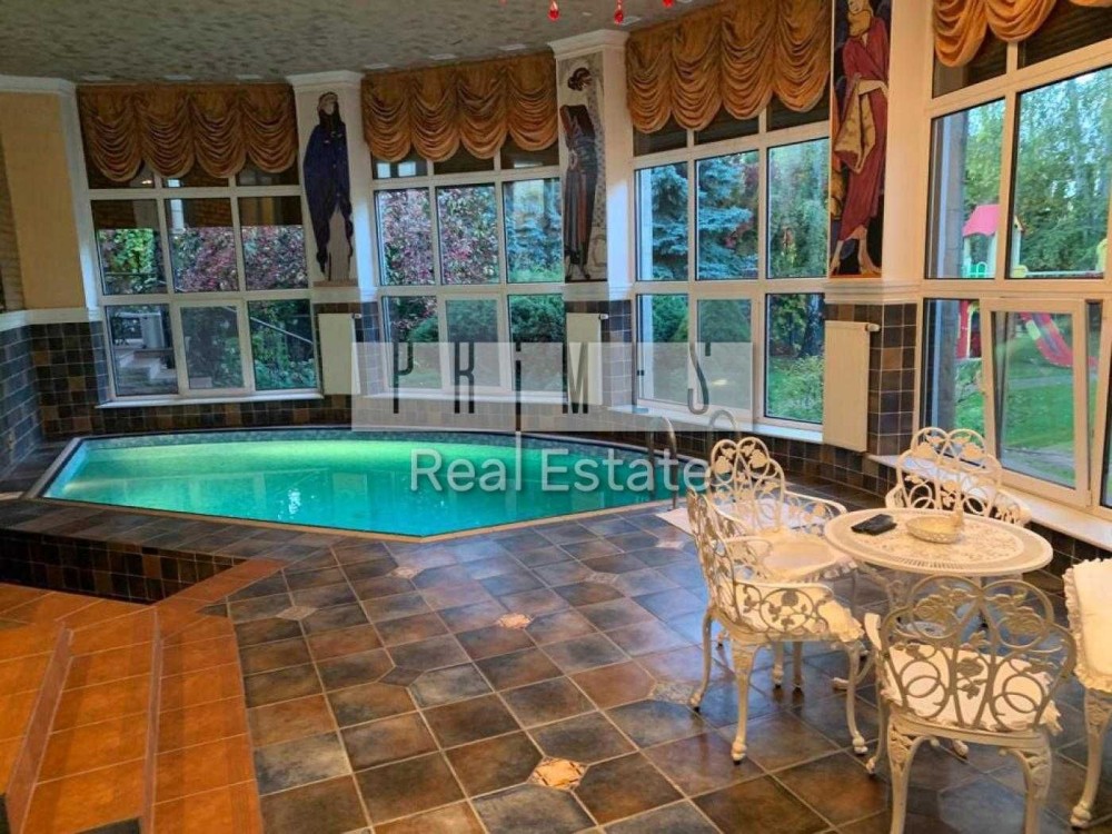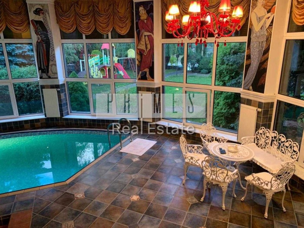 Перший поверх-велика гостина з обіднім столом для гостей та каміном; велика кухня з коморою та двома холодильниками; вихід на терасу та басейнову зону; загальний санвузол; спальня для гостей зі своїм санвузлом та міні гардеробною.