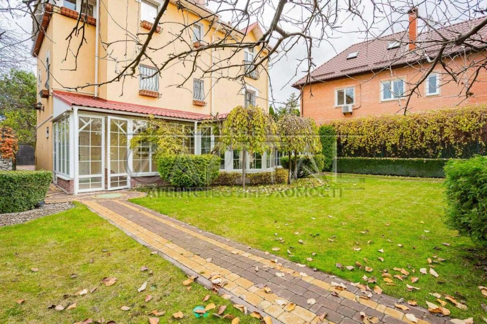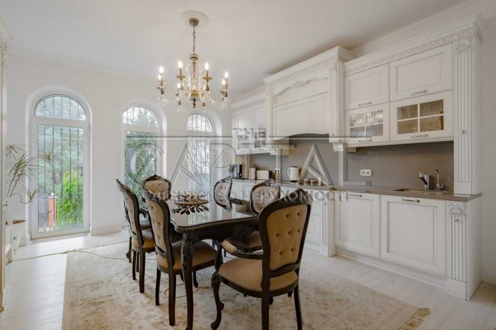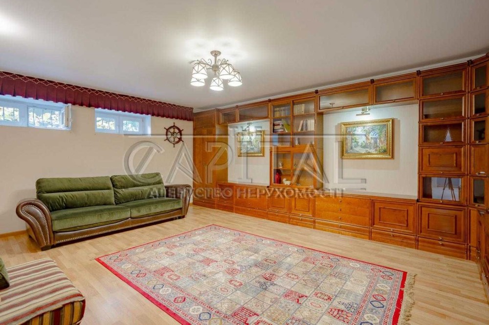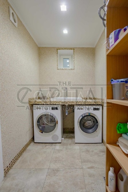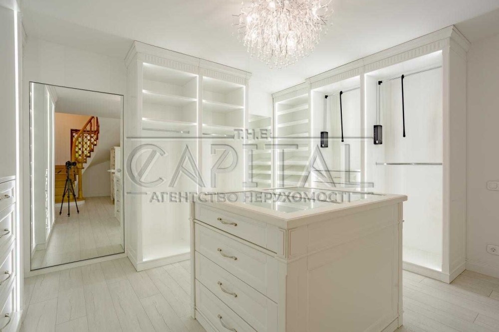 Будинок виконаний з екологічних матеріалів, укомплектований італійськими меблями та побутовою технікою провідних брендів. Продумане планування: кухня-їдальня, простора вітальня з каміном, кілька спалень, кабінет, бібліотека, 3 санвузли, веранда-оранжерея та балкон з видом на Дніпро і правий берег Києва.