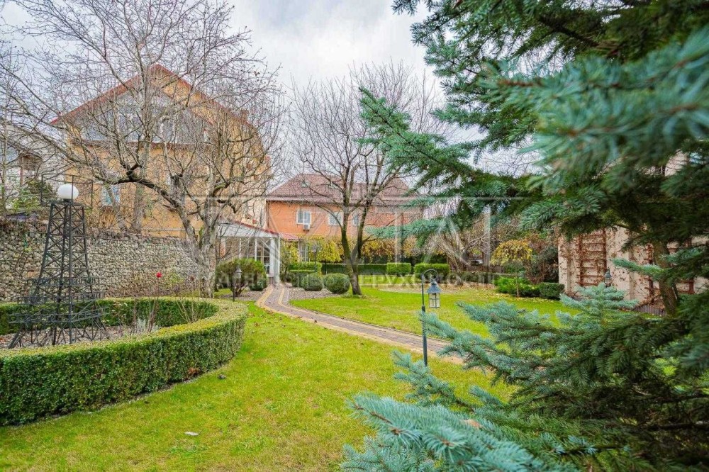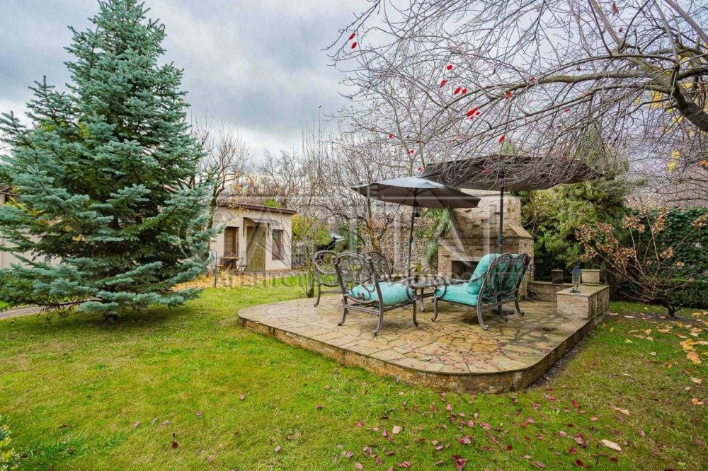 ландшафтний дизайн, автополив, BBQ зона, тераса з каміном під відкритим небом, майстерня, крита парковка на 3 авто + гараж, можливість розмістити до 5 автомобілів. Власний вихід до Дніпра.