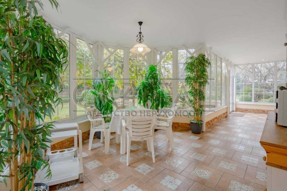 Веранда/ оранжерея з обідньою зоною та видом у внутрішній двір;