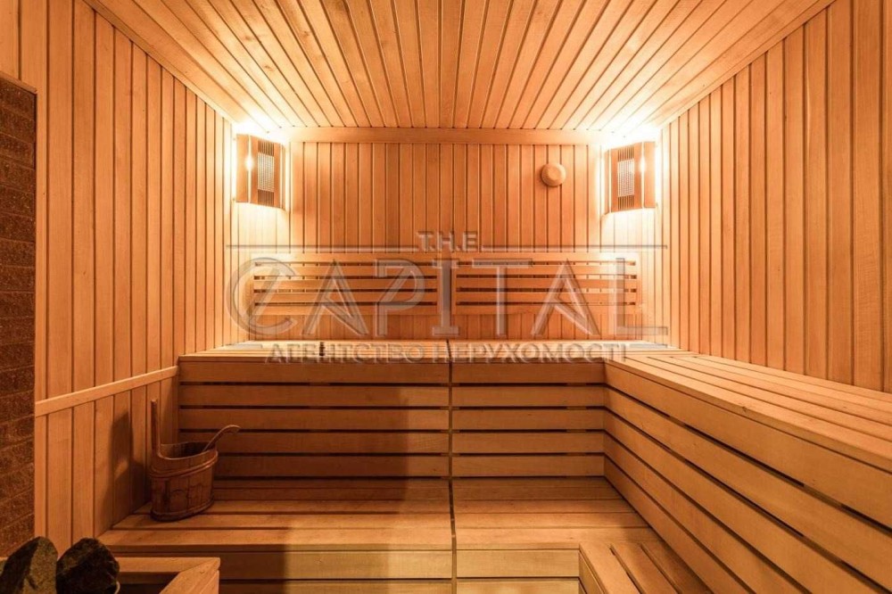 Перший поверх вражає функціональністю та стилем: просторий світлий хол з елегантними дерев'яними сходами, сучасна кухня з островом та вбудованою технікою преміум-класу, затишна вітальня з каміном та панорамними вікнами. Унікальною перевагою є власний критий басейн, зона для тренувань із сучасними тренажерами та фінська сауна – справжній домашній спа-центр для відновлення сил. Тут також розташована гостьова спальня з окремою ванною кімнатою, що забезпечує повну приватність.