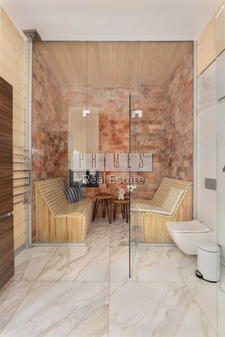 • Загальна площа: зручне планування — вітальня з каміном “Північне сяйво” з мармуру, 2 кухні (основна та додаткова), 1 спальня на першому поверсі