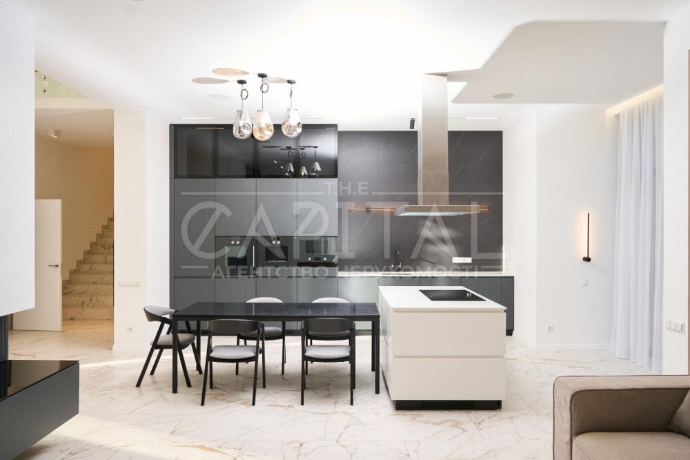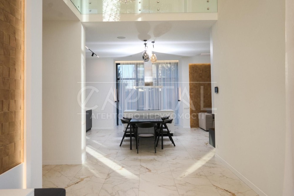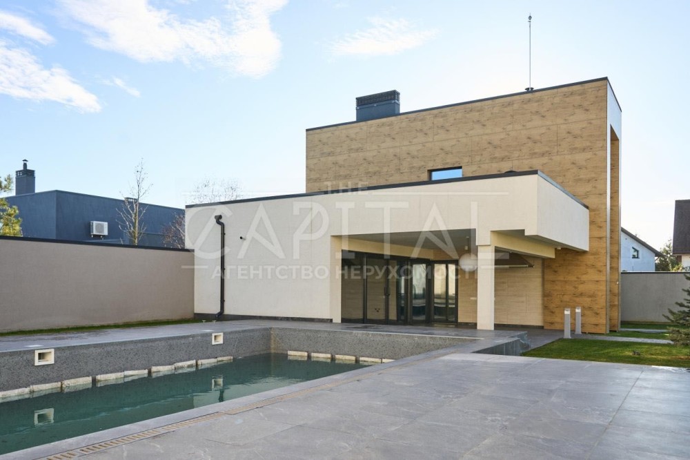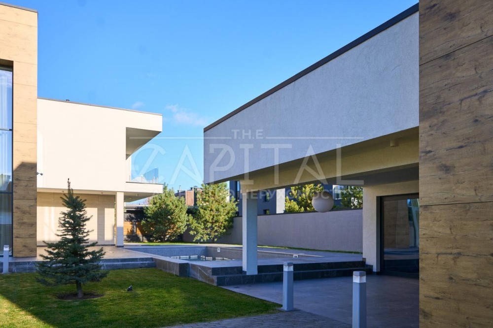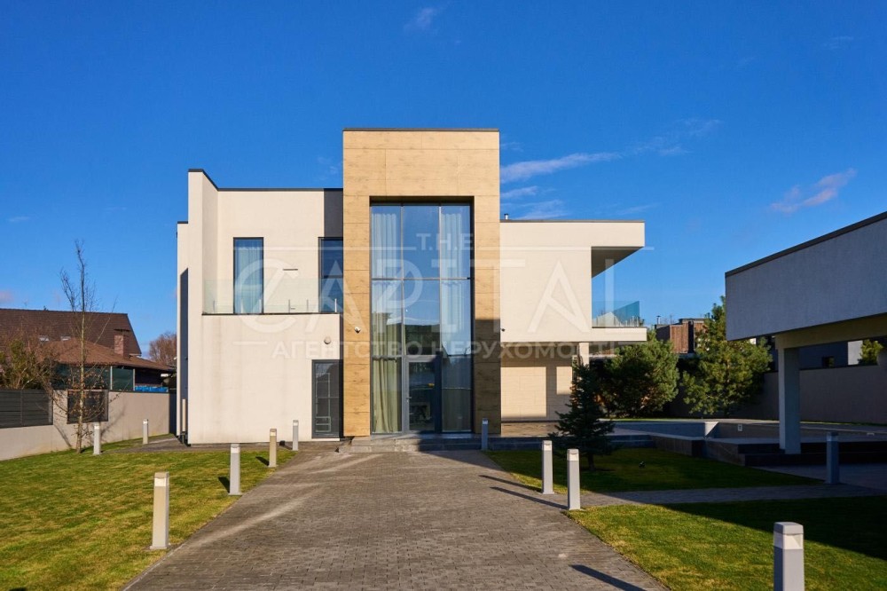 Основний будинок площею 255 м² створений як повноцінна сімейна резиденція з просторими представницькими зонами та продуманим функціональним зонуванням. Додатковий будинок площею 193 м² виконаний у форматі SPA-комплексу з гаражем та зонами відпочинку.