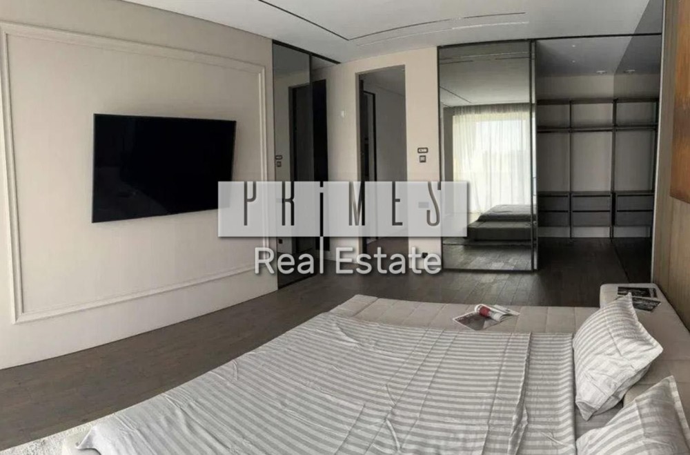 МASTER ROOM 2-й поверх приємна майстер спальня з тонкими тонами та просторим італійським ліжком; ТБ 65 дюймів; дві гардеробні кімнати, жіноча та чоловіча з монтованими меблями; підлога дубовий паркет; вихід на терасу; майстер сан. вузол, в якому є величезне вікно, ванна з каменю, накладні умивальники, душова та унітаз-біде.