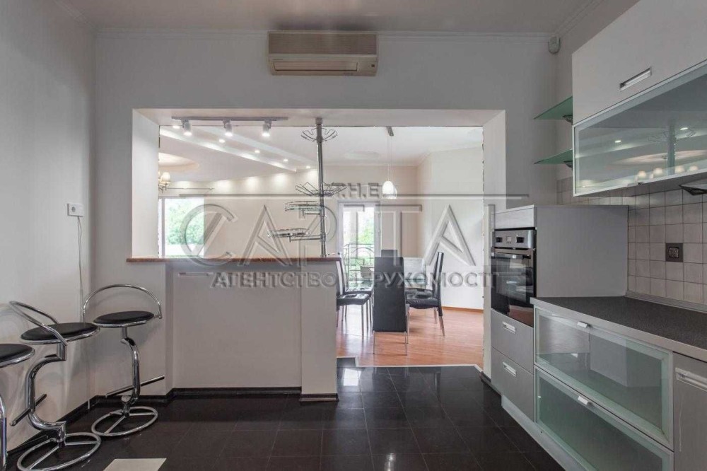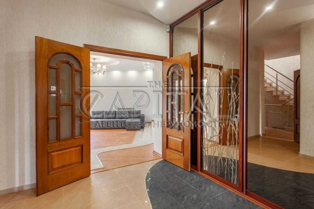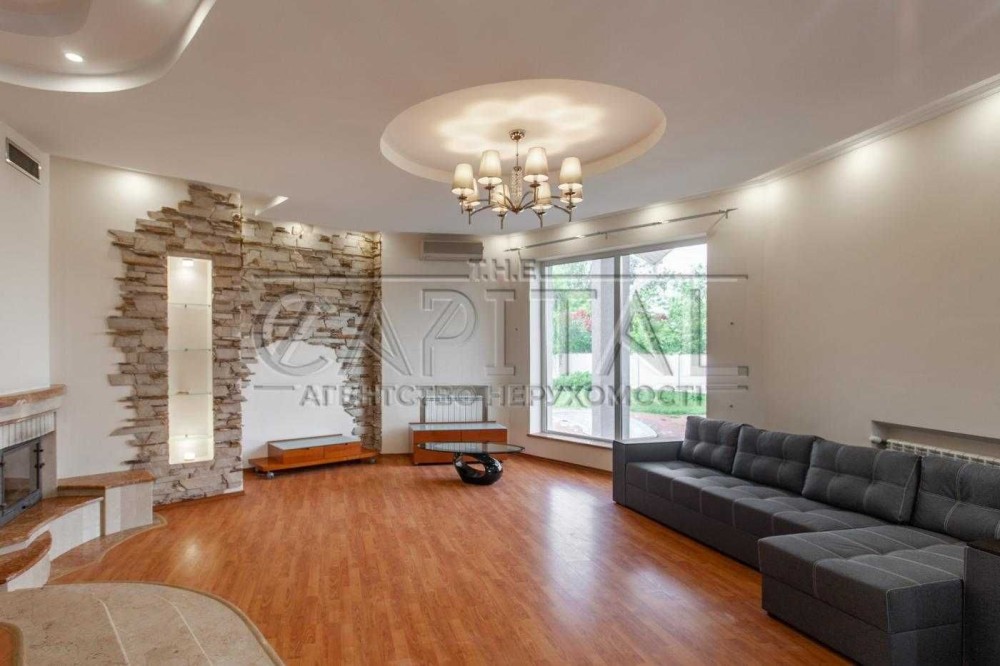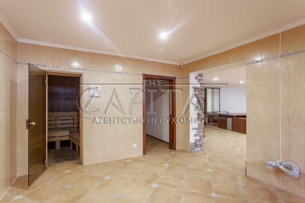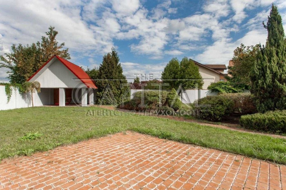 4 спальни, кухня-студия, 2 гардероба, кабинет, сауна, гараж, басейн, беседка с барбекю, домик охранника.