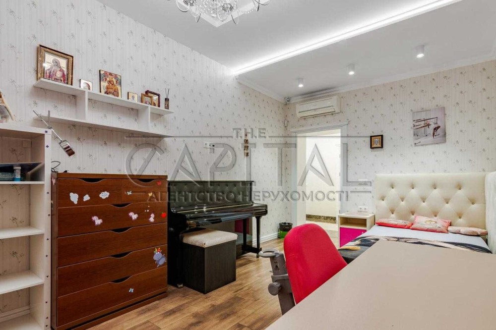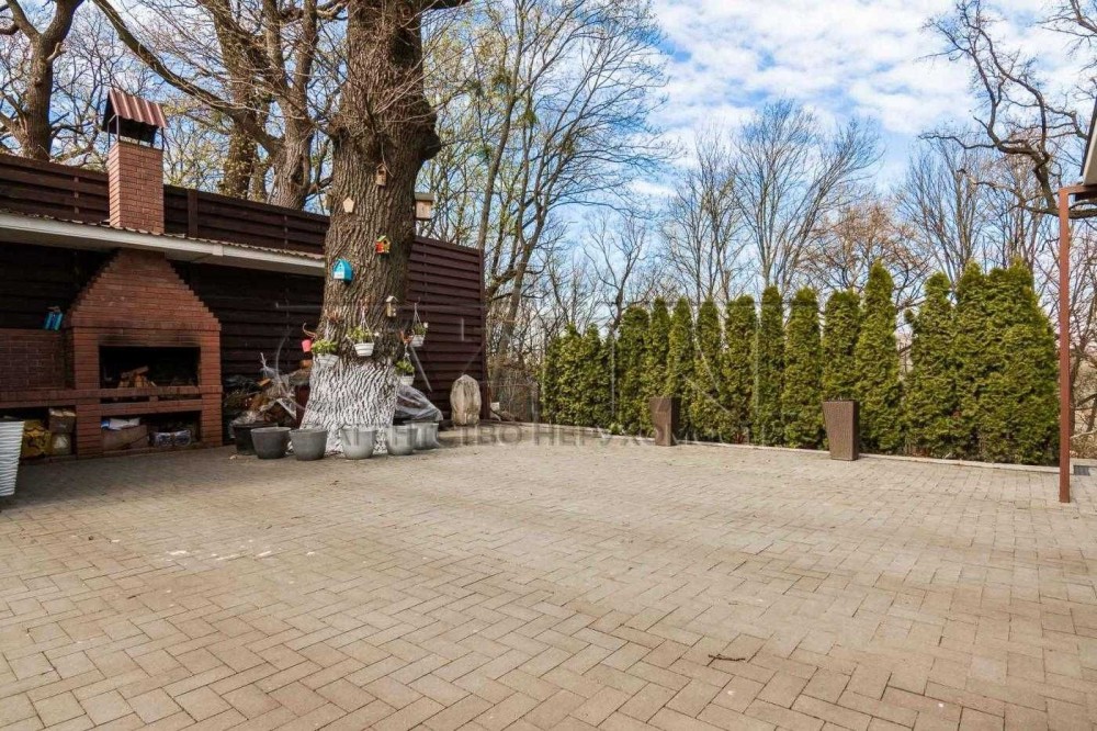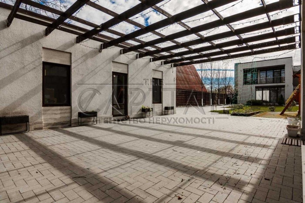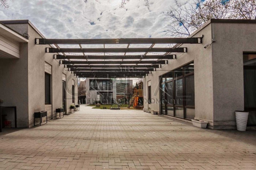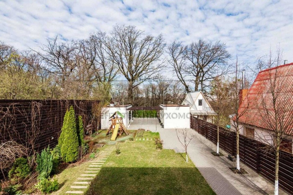Пропонується в оренду двоповерховий сучасний будинок в Києві, загальною площею 365м2. Будинок розташований на тупиковій тихій вулиці в Шевченківському районі Києва. Ділянці 8 соток, з великою кількістью насаджень, дерев, кущів, квітів. На ділянці автонавіс на 2-3 машини, сад, дитячий майданчик. Також на ділянці є два будиночки, в одному крита зимова альтанка в якій є піч, на якій можна готувати та яка має великий теплий простір для відпочинку 2х2,5м. Другий будиночок гостьовий, в якому є спальна кімната с/в з душем та ванною, та кухонну зону. Також на ділянці є зона барбекю та ще одна літня альтанка. В кінці ділянки є власний вихід у Сирецький Гай, заповідна зона.