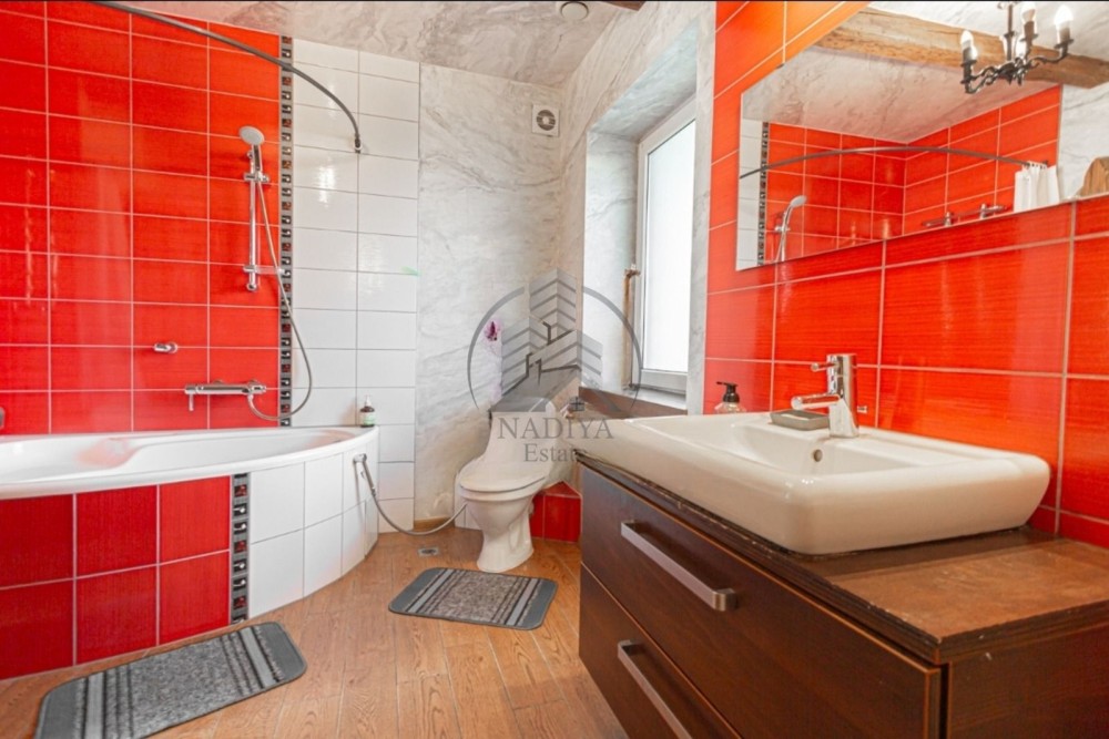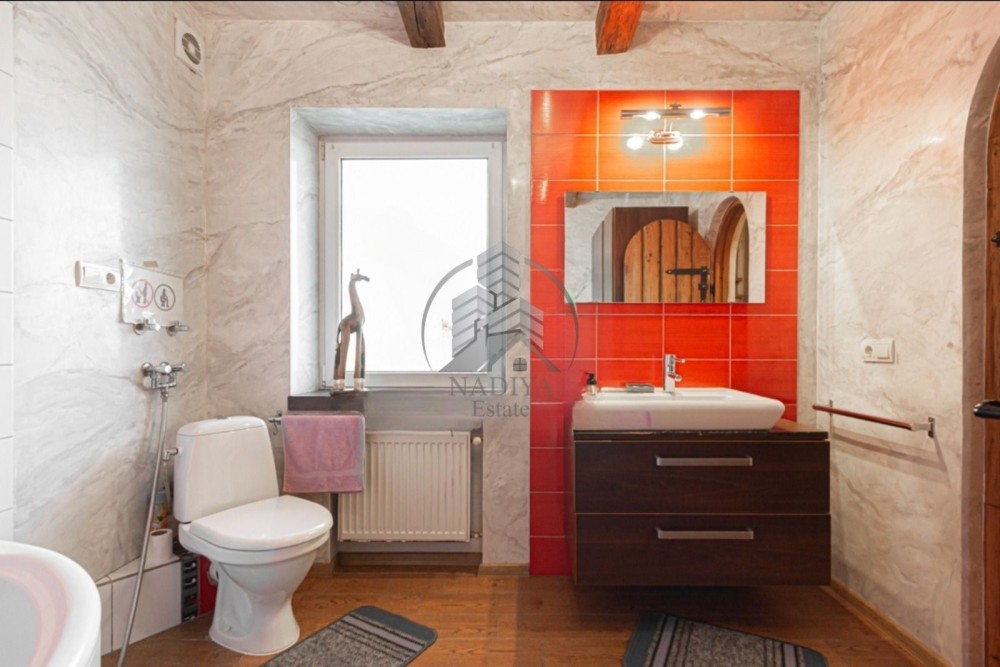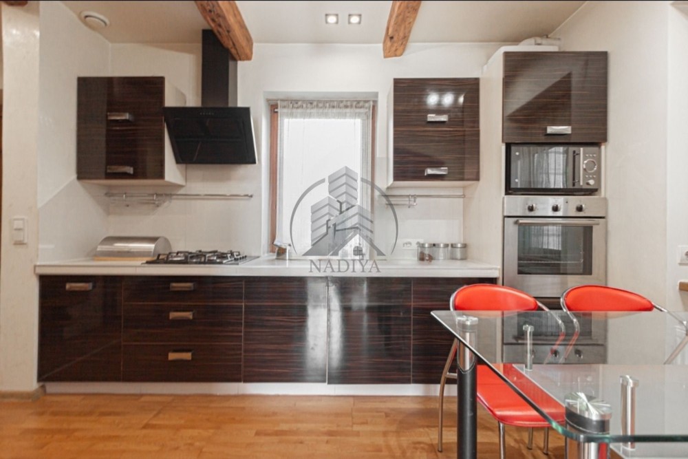 Кухня обладнана меблями, плитою, духовою шафою, витяжкою, мікрохвильовою піччю та має зручну обідню зону. Санвузол суміжний з ванною кімнатою, оснащений якісною сантехнікою.
