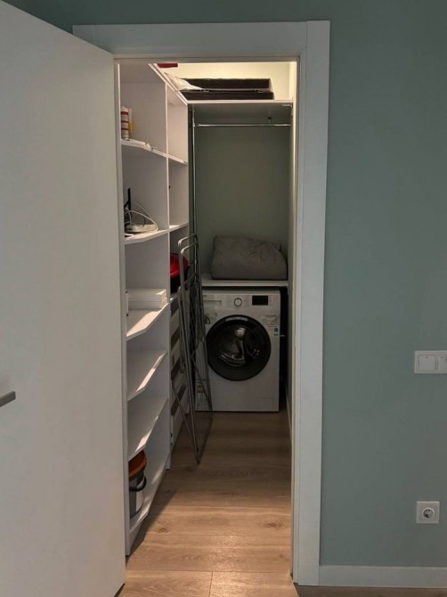 містка гардеробна з пральною машиною
