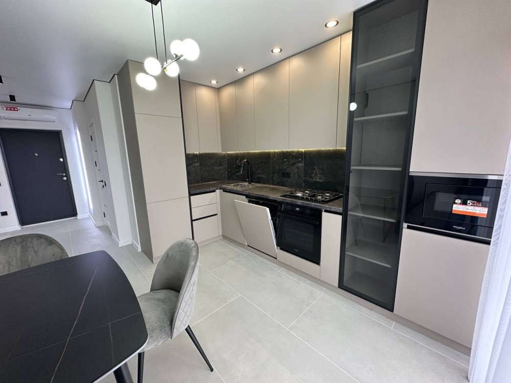 - всі необхідні меблі та техніка: посудомийка, кондиціонер, телевізор, холодильник, газова варильна поверхня, духова шафа, пральна машина