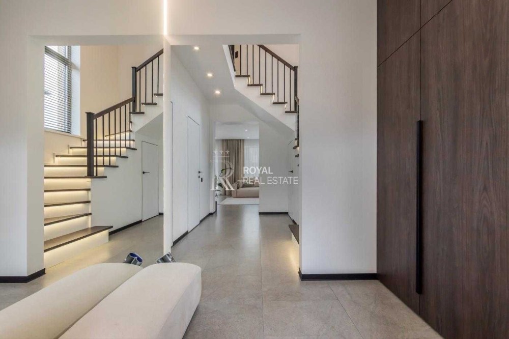Будинок виконаний за індивідуальним дизайнерським проєктом: сучасний інтер’єр, високоякісні матеріали, продумане освітлення та естетика, яка підкреслює стиль кожної кімнати. Весь декор залишається — ви заїжджаєте в повністю готовий до життя простір.
