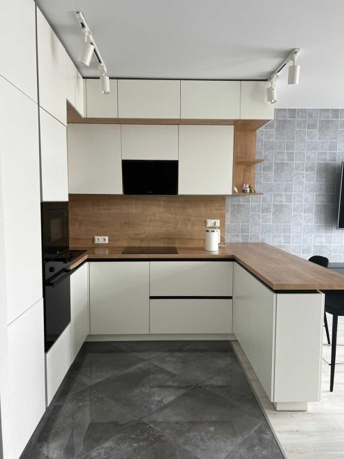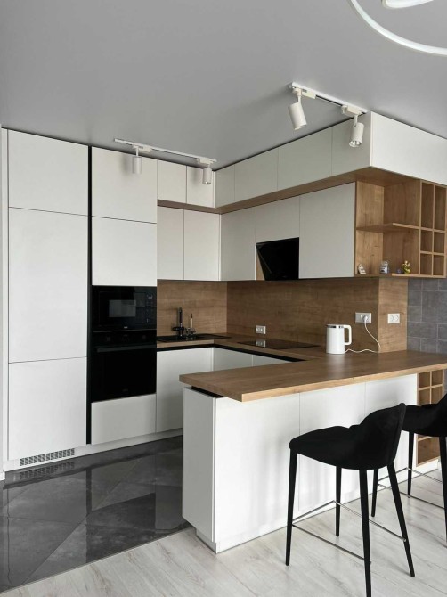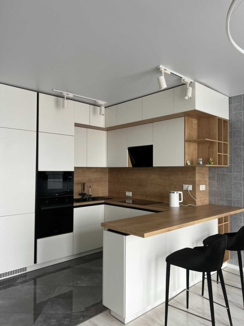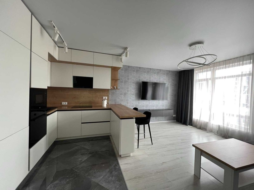 У квартирі є будинкове центральне опалення, а гаряча вода доступна як централізовано, так і через бойлер на 80 л. Кухня-студія обладнана 65’’ QLED Samsung Smart TV з підпискою Megogo, розкладним диваном, вбудованою індукційною варильною поверхнею, духова шафою, мікрохвильовою піччю, посудомийною машиною та холодильником Franke, системою зворотного осмосу та електрочайником Xiaomi.
