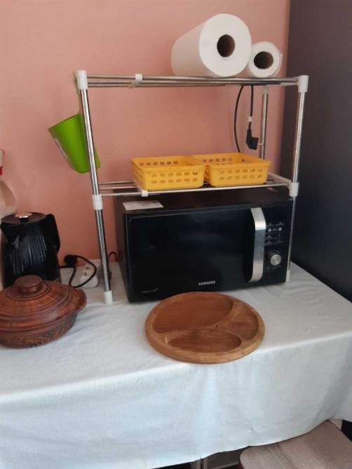 Вся техніка нова: холодильник, плита, пральна машина, мікрохвильова піч, чайник, пилосос, бойлер.