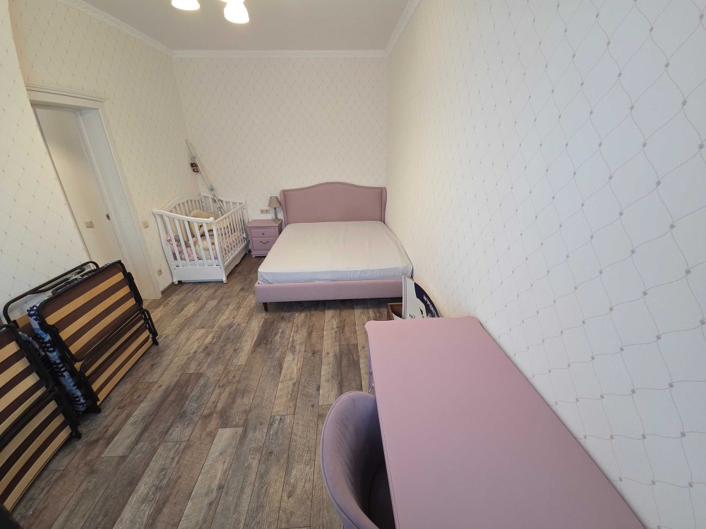 Чудове планування з окремою спальнею та велика вітальня, між кімнатами простора кухня з вбудованою технікою. Окремі два санвузли, велика гардеробна. Всі вікна у затишний двір