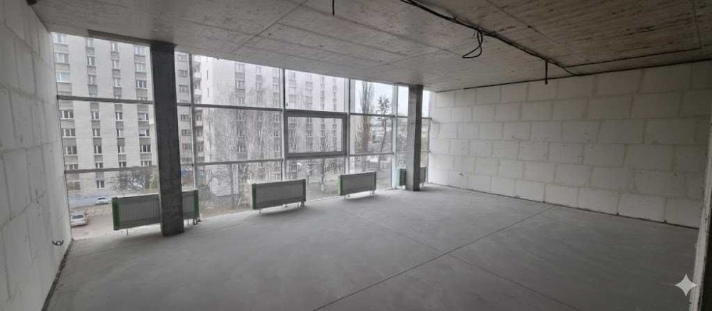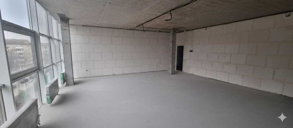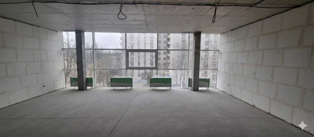 Приміщення світле, з великими панорамними вікнами, добре проглядається з вулиці. Підходить для організації офісу відкритого типу або з окремими кабінетами.