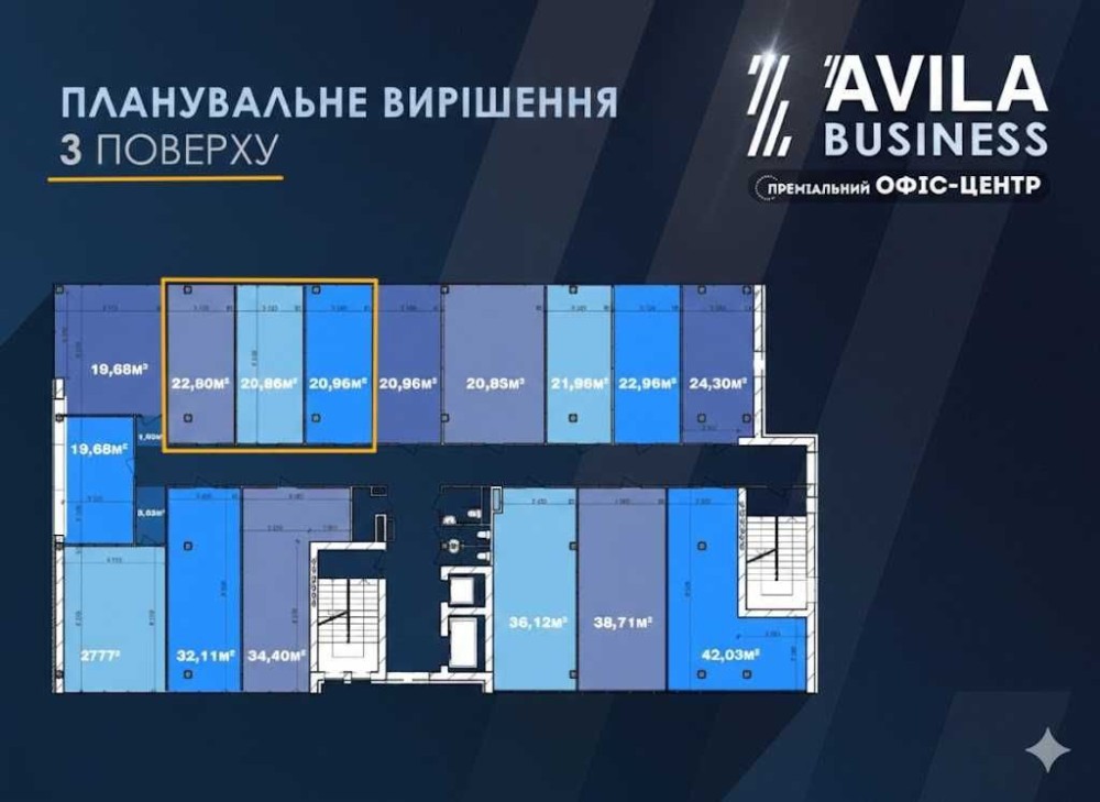 Здається в оренду фасадне офісне приміщення у сучасному бізнес-центрі «Авіла», розташованому в центральній частині міста Житомир.