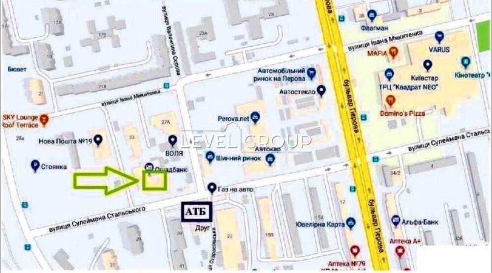 Аптеки, ресторани, магазини Аврора та ін.