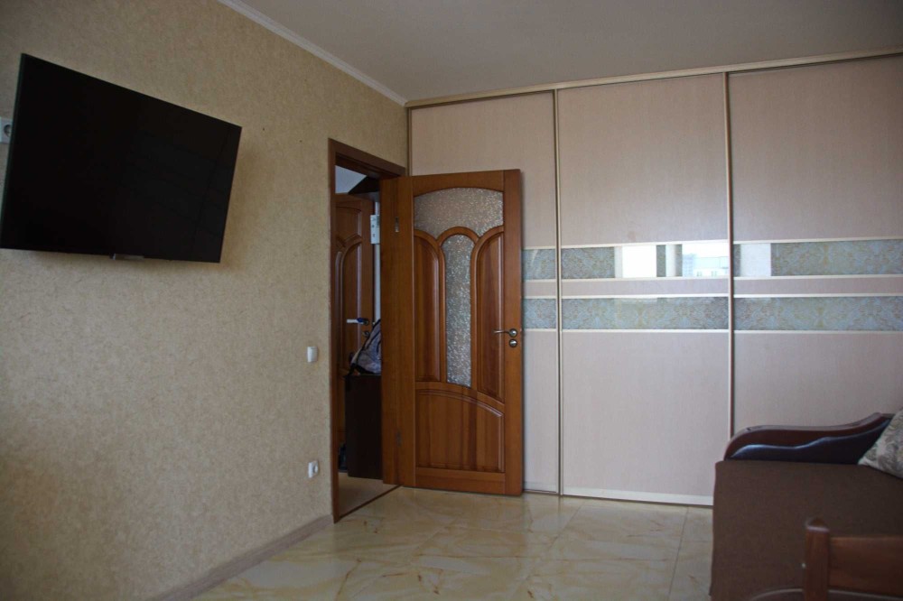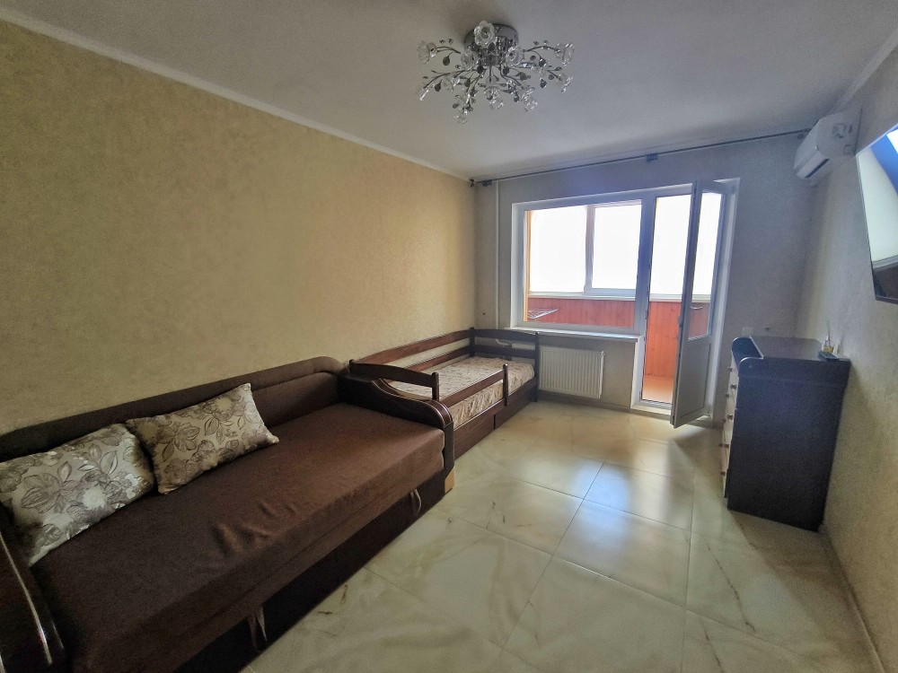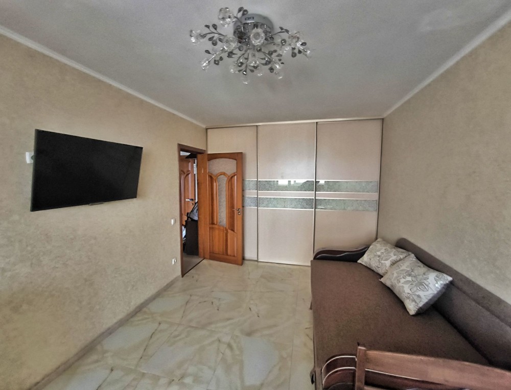 В кімнаті гарний розкладний диван та дитяче ліжко ( наявність або їх відсутність меблів обговорюється). Містка і зручна шафа-купе. Тамбур. Гарні сусіди.