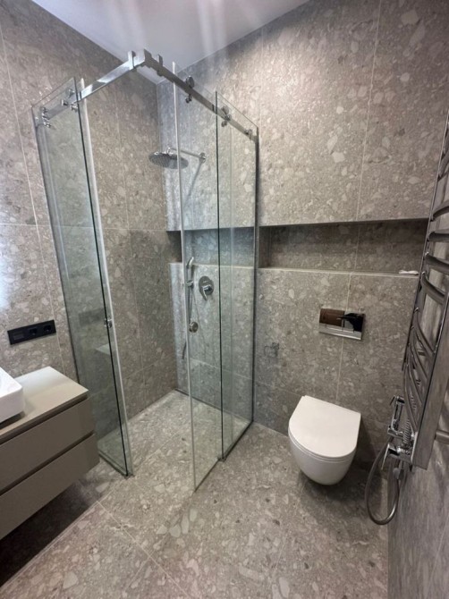 Додаткові платежі - тільки за лічильниками. Квартира має всі необхідні побутові прилади (телевізор, домашній кінотеатр, холодильник, електроплита та ін.), Wi-Fi, меблі та кондиціонер. Є тераса з панорамними вікнами та прекрасним видом на місто, двір і вулицю.