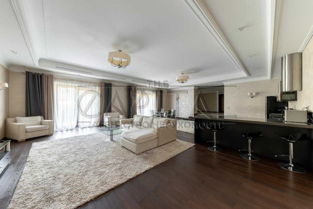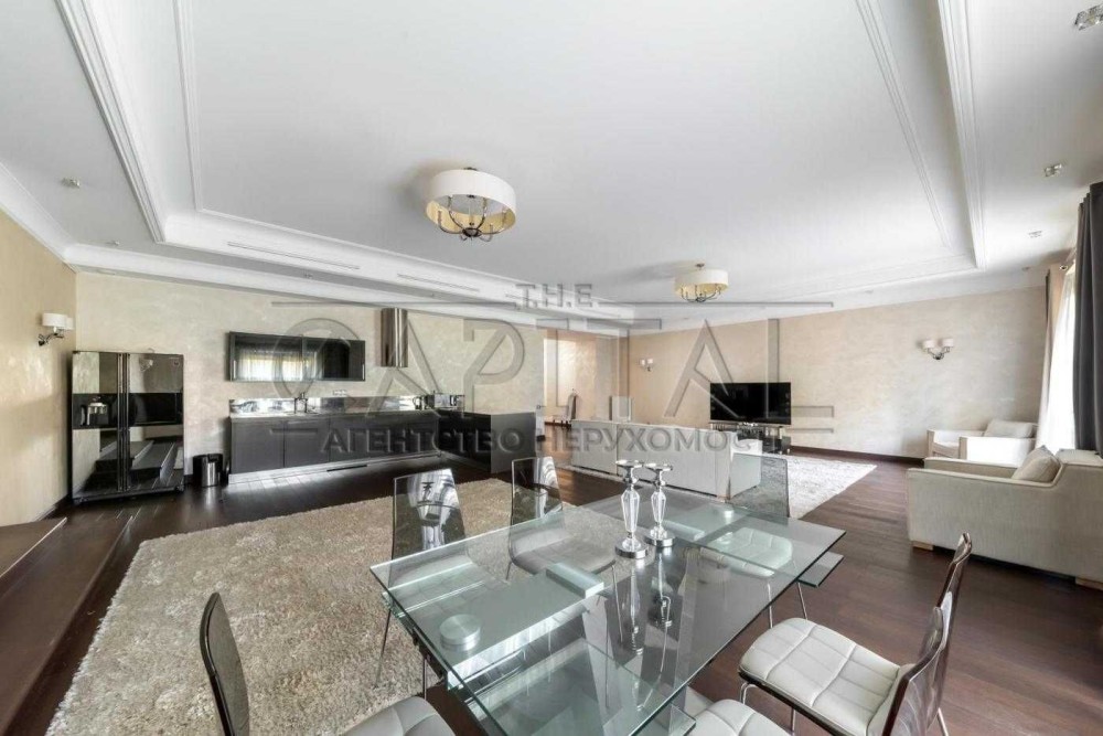 Авторський інтер’єр у стилі ренесансу з використанням мармуру, золота та дуба. Простору вітальню прикрашають перські килими, антикваріат XVIII–XIX століть та дизайнерський диван.