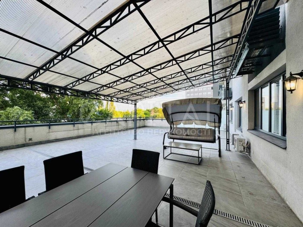 Велика тераса з навісом — 100 м² приватного простору просто неба.