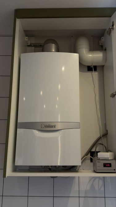 По всьому першому поверху встановлено підігрів підлоги, а також дизайнерські радіатори, що забезпечують комфорт у будь-яку пору року. Також у вітальні є діючий камін на дровах.