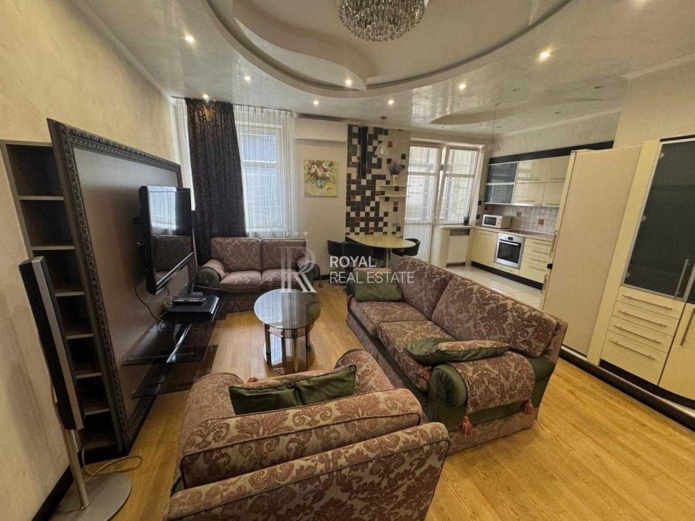 Пропонується в оренду простора та функціональна квартира площею 74 м² у центрі столиці. Розташована на 9 поверсі сучасного будинку.