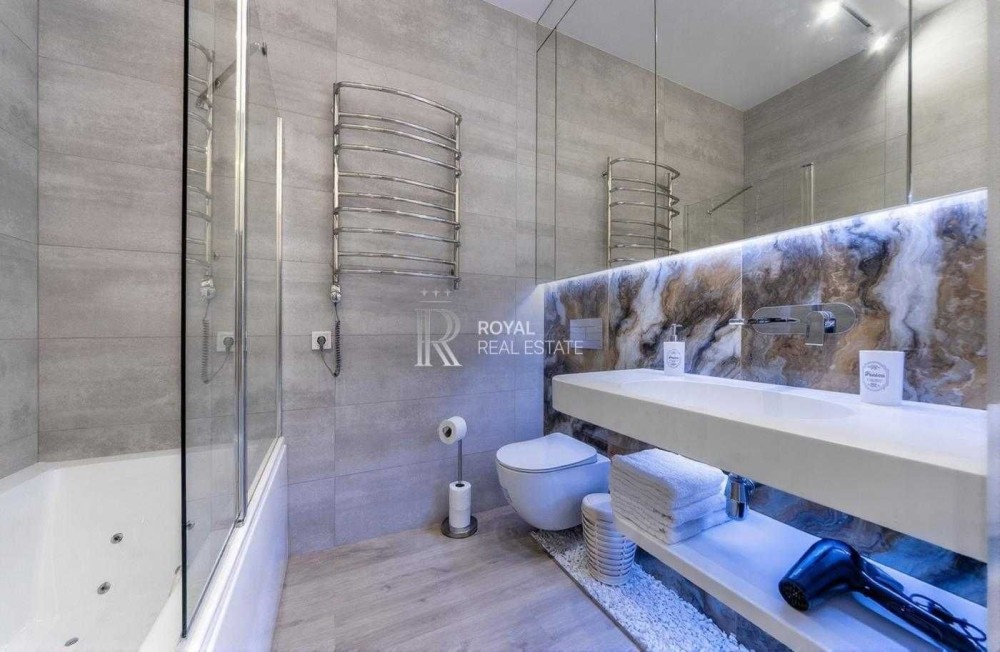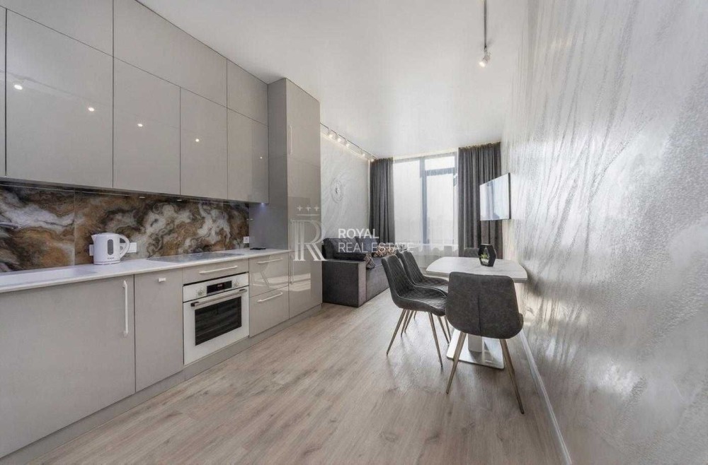 Квартира виконана у сучасному стилі з використанням якісних матеріалів і техніки провідних брендів та повністю готова до заселення.