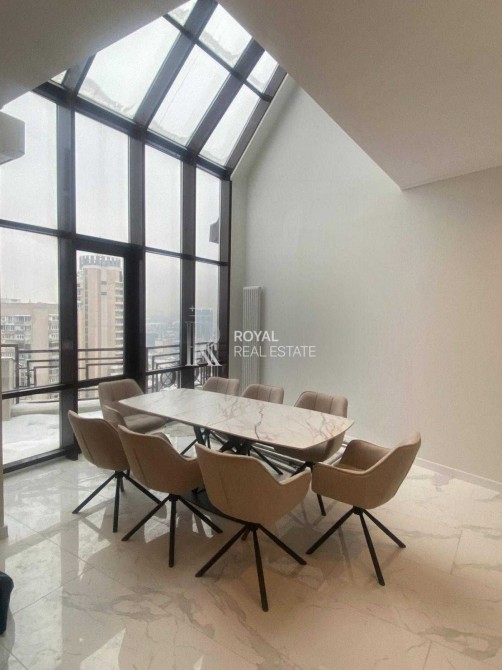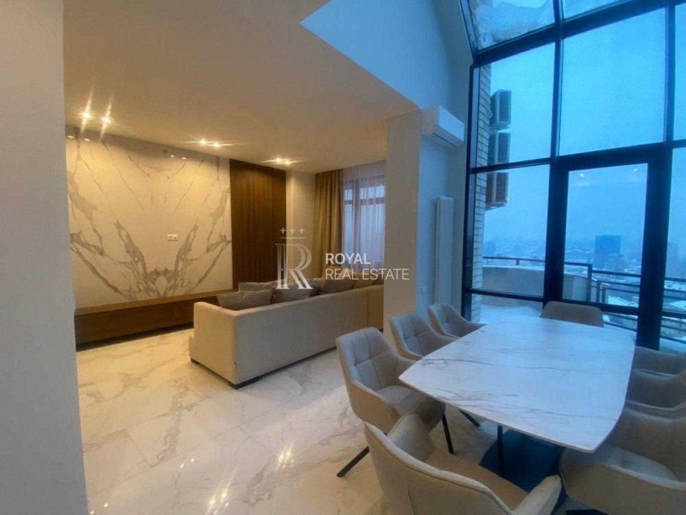 Простора дворівнева квартира з новим сучасним ремонтом у самому історичному центрі столиці. Формат для комфортного проживання великої родини або представницького життя в престижному оточенні. Панорамні вікна виходять на вул. Богдана Хмельницького, будинок із підземним паркінгом та автономним живленням.