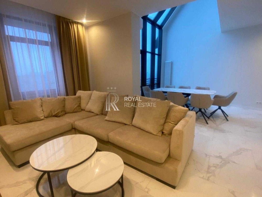 - Простора кухня-студія з виходом на терасу; - Два санвузли: один з душовою кабіною, інший з ванною; - Гардероб; - Затишна спальня з власною ванною кімнатою; Для максимального комфорту встановлено: