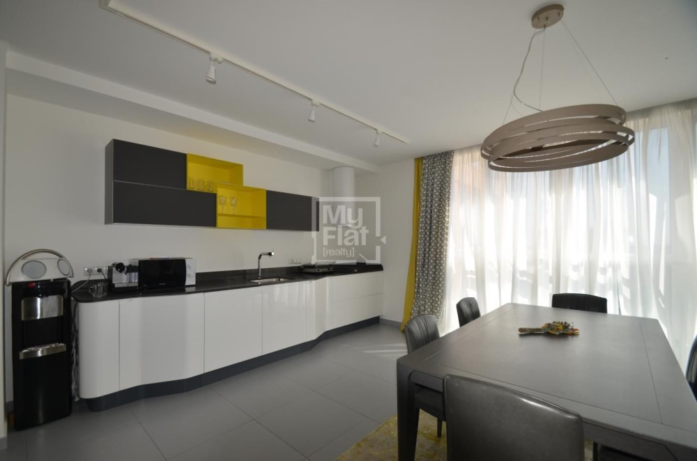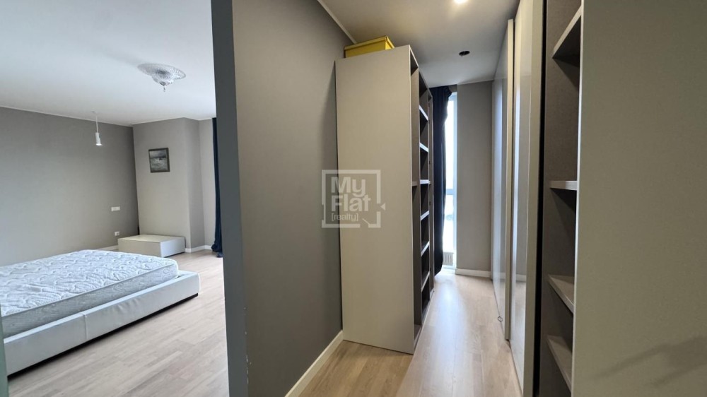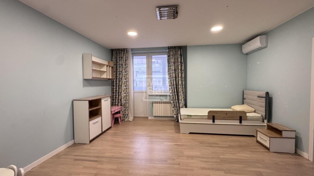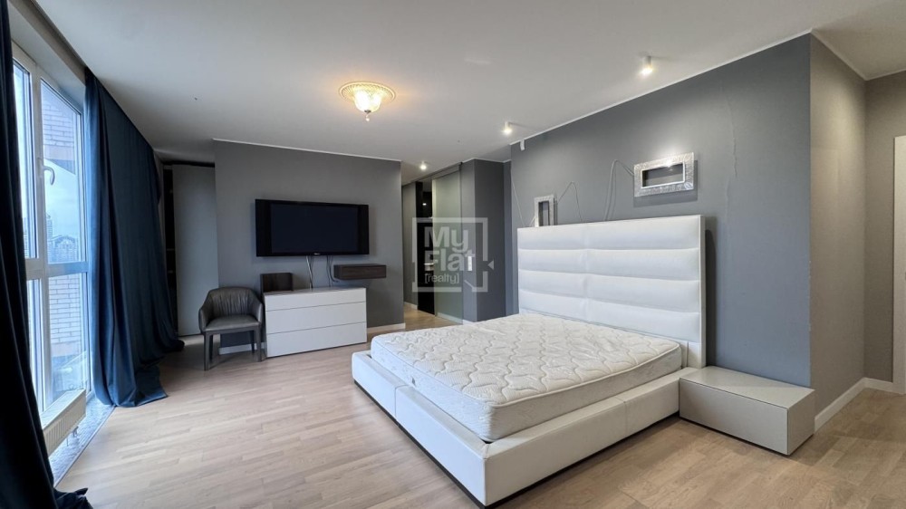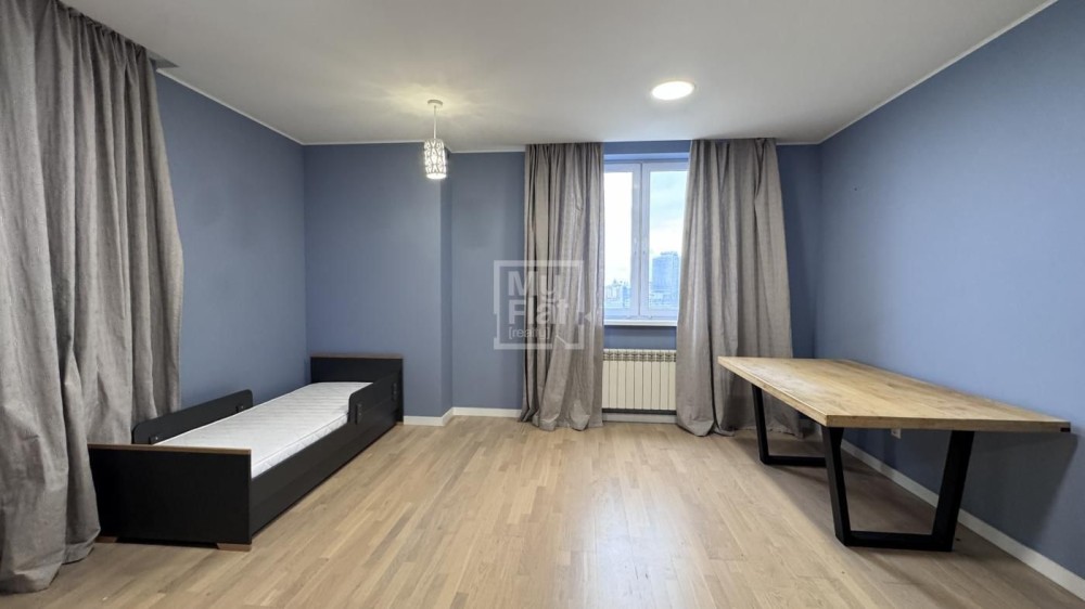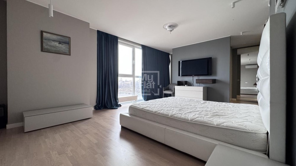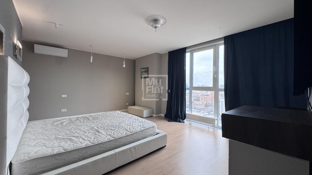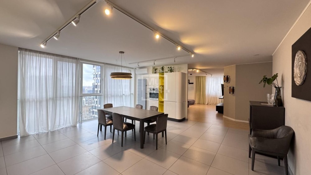 Видовая квартира площадью 185 кв.м расположена в новом доме на 18 этаже. В квартире: кухня- гостиная, рабочий кабинет, детская, хозяйская спальня с  гардеробной и подсобной комнатами, 2 с/у. В квартире выполнен качественный ремонт, панорамные окна в пол. Полностью меблирована и оснащена техникой. Красивый панорамный вид на Киев. В стоимость включено одно парковочное место.