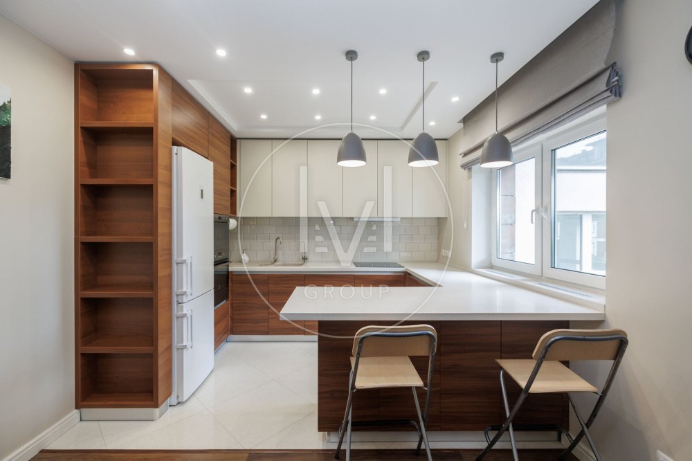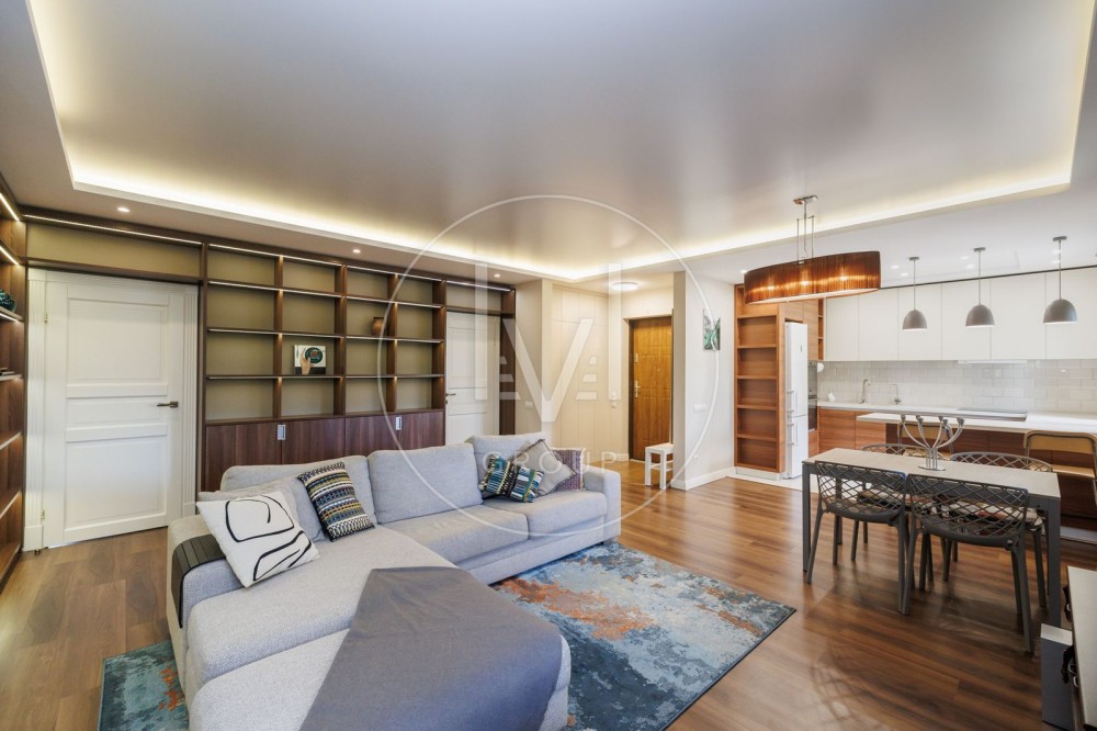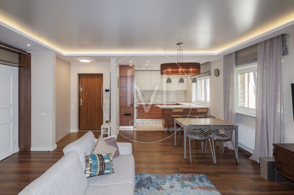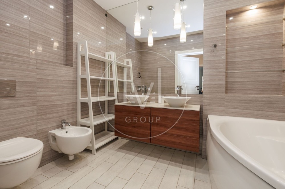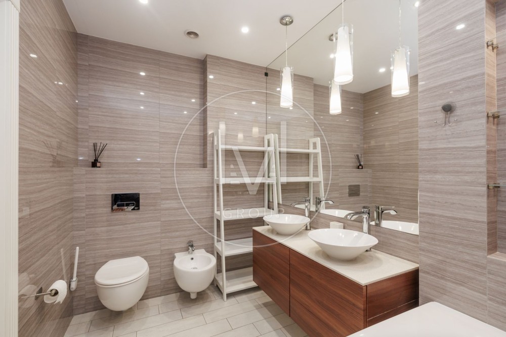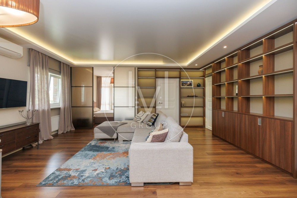 В квартирі дуже якісний ремонт, робили для себе, а тому було використано лише дорогі та якісні матеріали. На підлозі паркетна дошка та плитка, є підігрів підлоги. Багато різного LED освітлення.