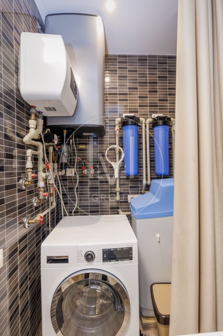 Квартира укомплектована меблями та технікою: вбудована кухня, варильна поверхня, духова шафа Electrolux, мікрохвильова піч, посудомийна машина, холодильник , витяжка, пральна машина Bosch, кондиціонери, телевізор та інше.